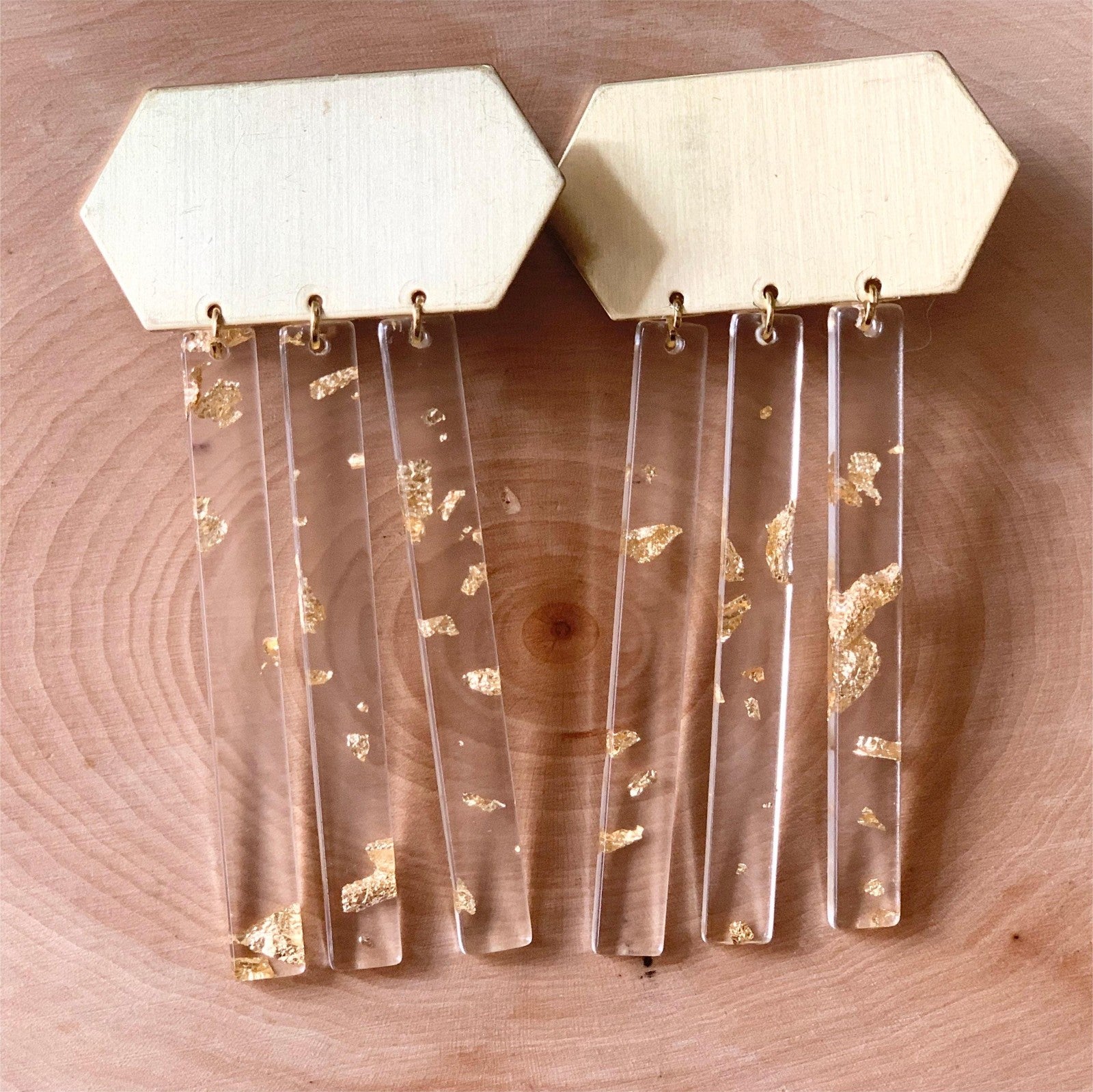 The perfect urban & contemporary style often needs a subtle accessory, just like these amazing earrings. Inspired by the autumn, by the falling leaves, pumpkin spiced latte, and neutral colors! The upper part of the earrings features a geometric golden brass charm, and attached to it, we have three dangling narrow, clear acrylic shapes, that are ornated with just a pinch of golden foil. The arrival of the fall often means that we go back to our busy routine, but this doesn’t mean that you have to give up your style.