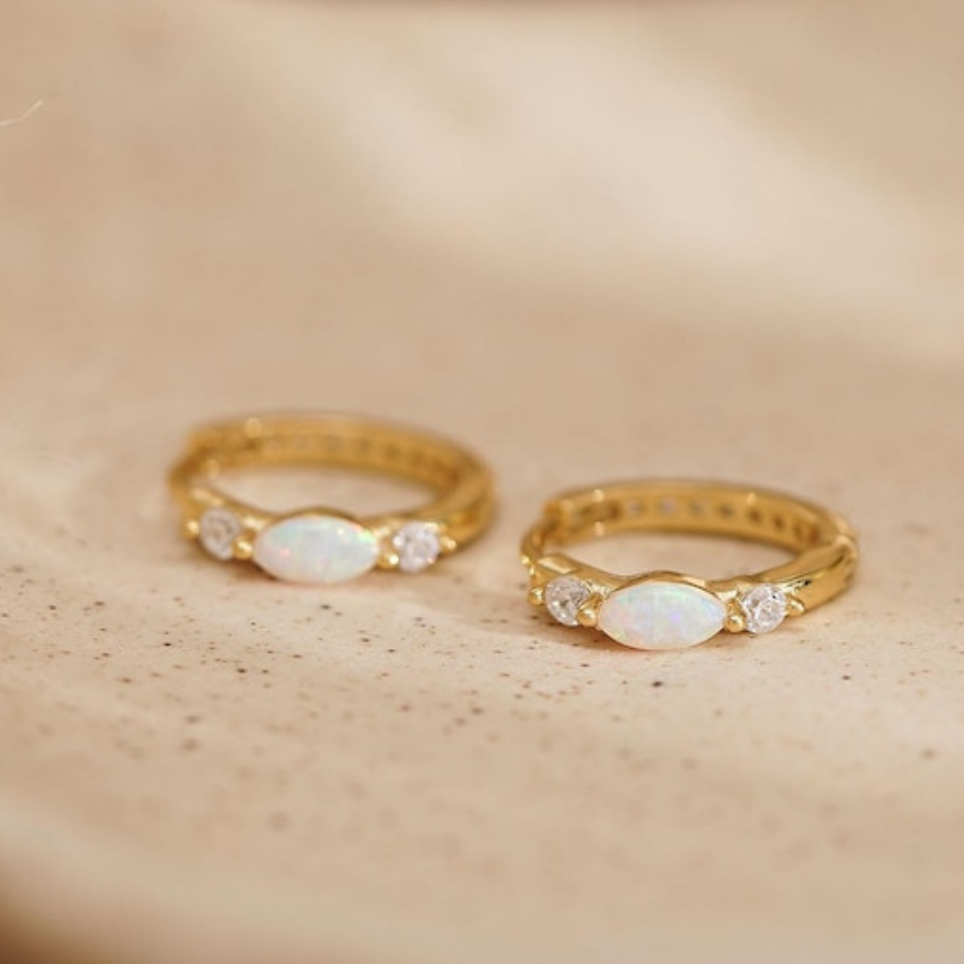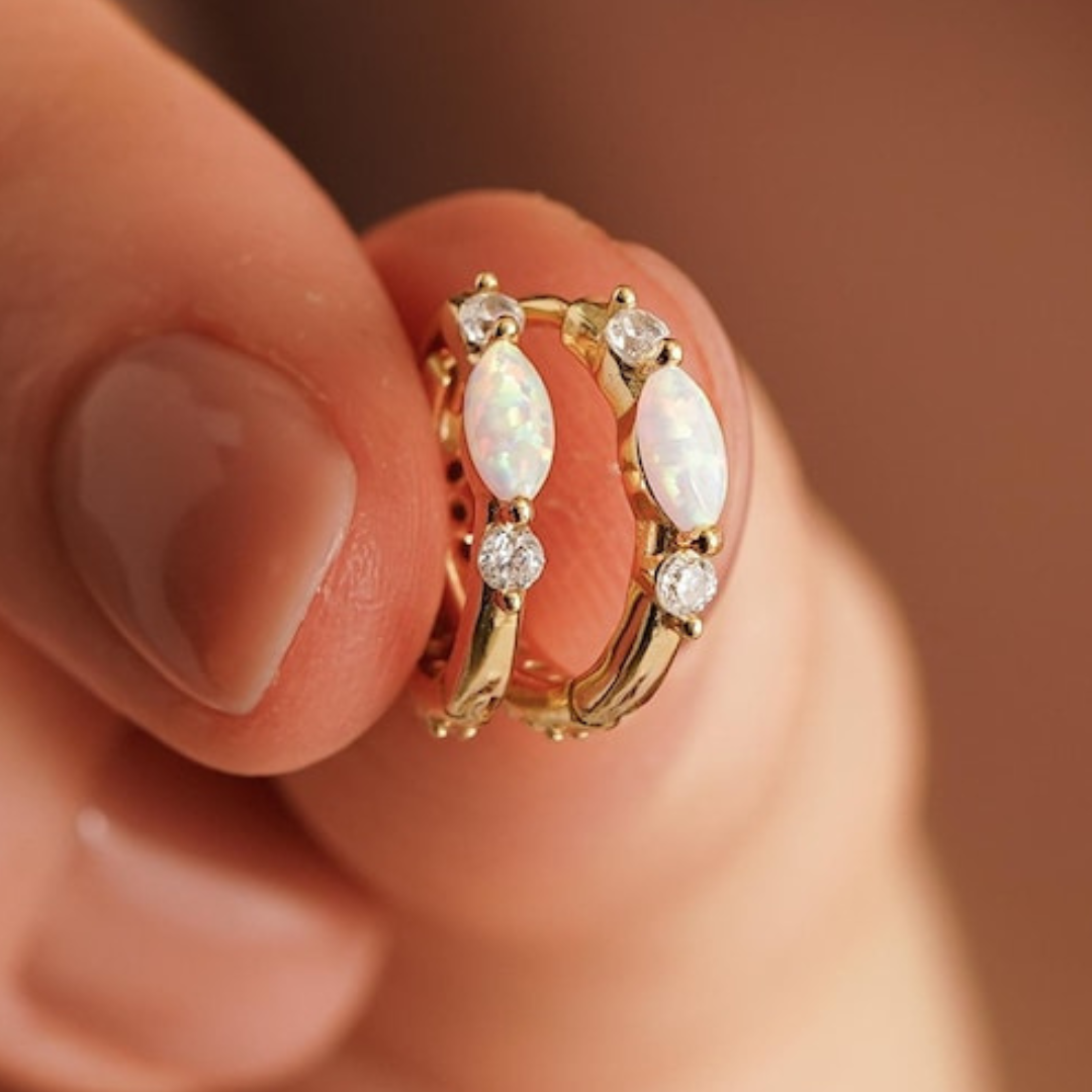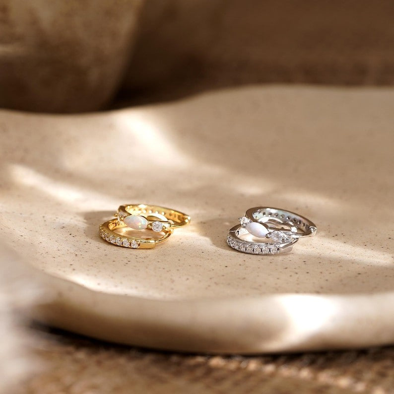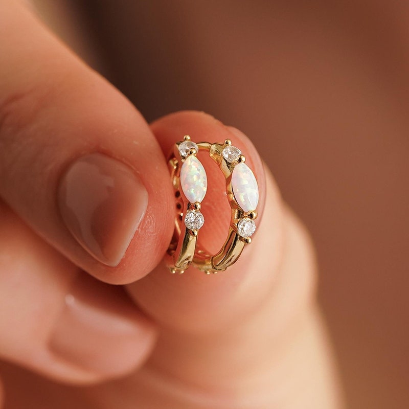 Minimalist Opal Huggie Hoop Earring , White Opal Earrings, Sterling Silver Opal Huggie Hoop Earrings, Dainty Hoop Earrings, Christmas Gifts