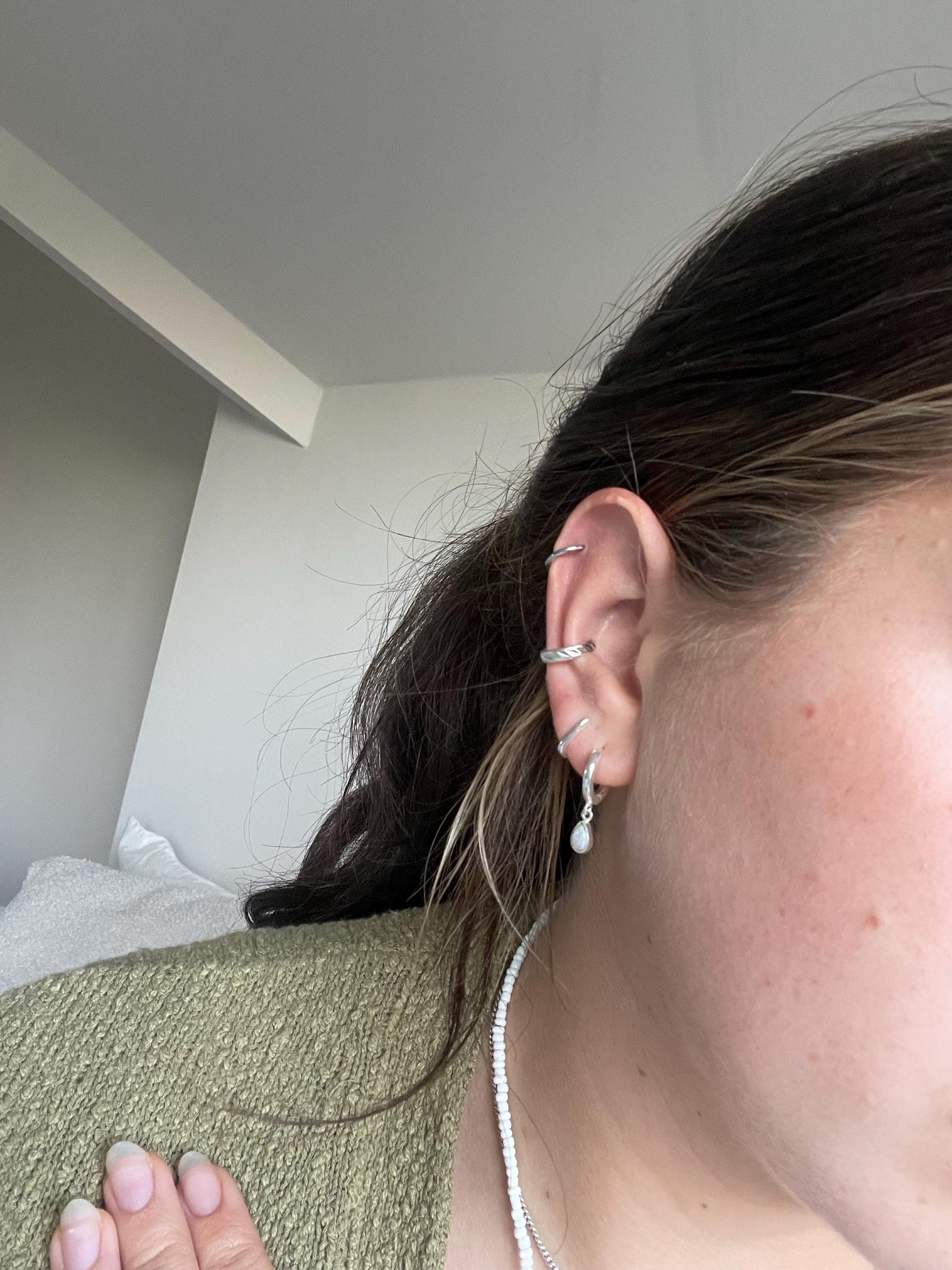 These smooth silver hinged hoop earrings are perfect for combining with other earrings and wear them in the second hole. They can also be worn as cartilage piercing or helix.