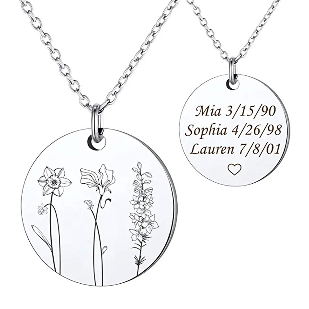 Multiple Birth Month Flowers Necklace Connection of Family and Friends