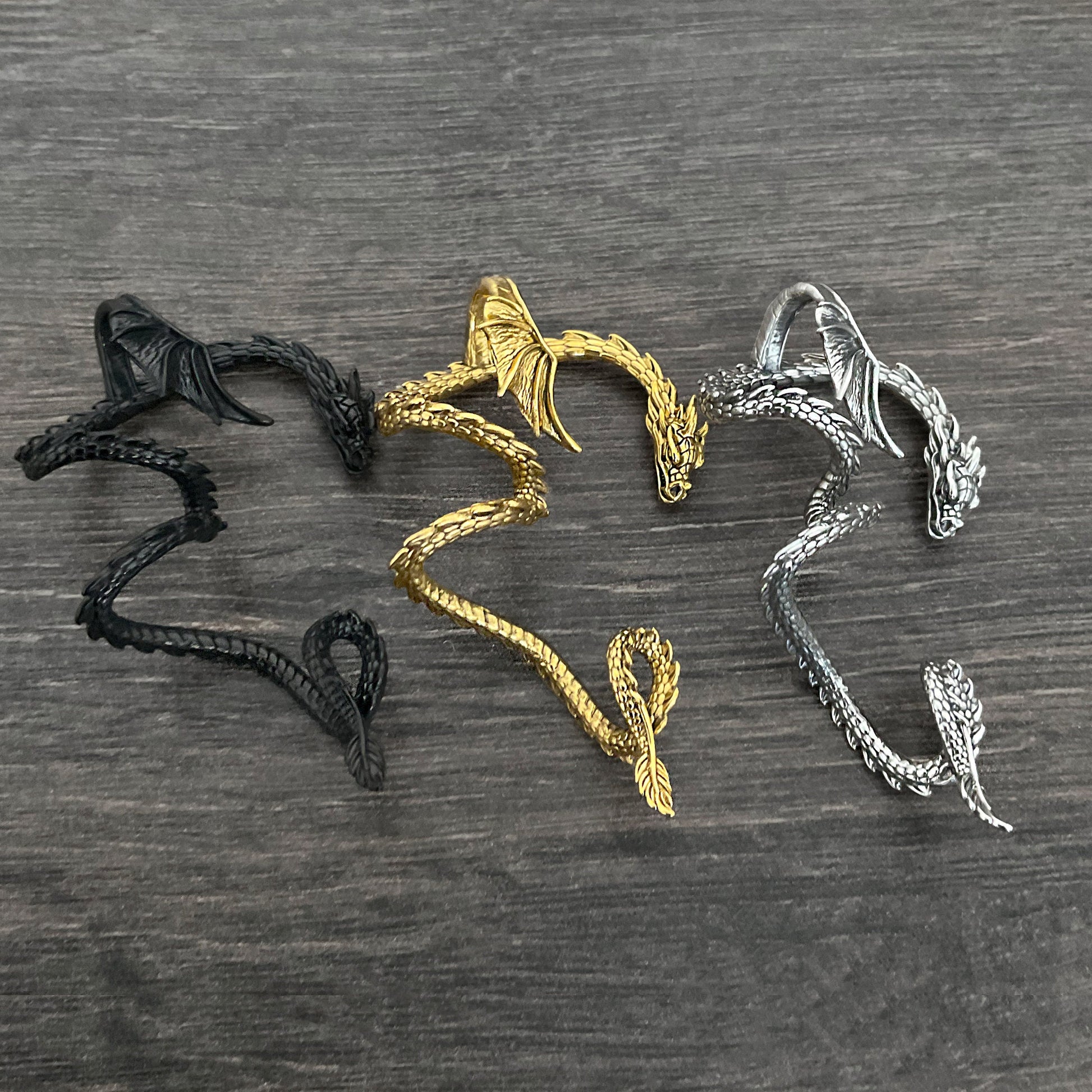 NO PIERCING Dragon cuff with large wing in Gold Dragon earrings, Dragon ear cuff, Black Dragon, Dragon ear wrap