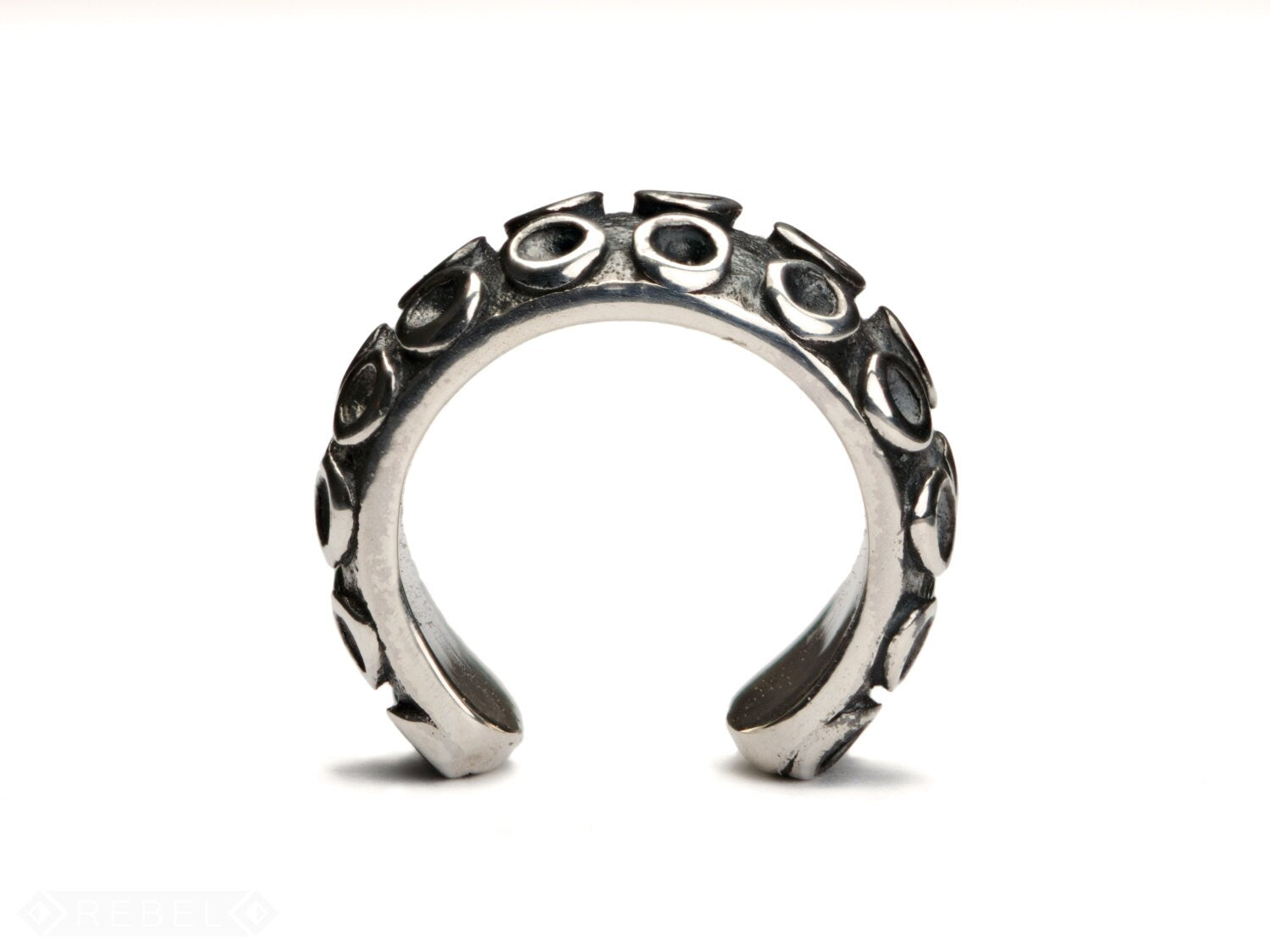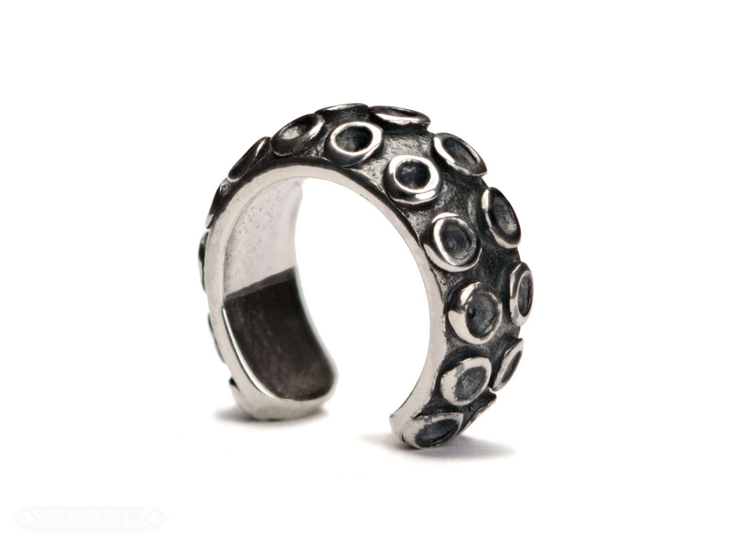 ► Octopus Tentacle Ear Cuff Earring cast in solid Sterling Silver with and black oxide finish. The ear cuff is about 9.5mm (inner diameter). Sold by piece (not in pairs)
