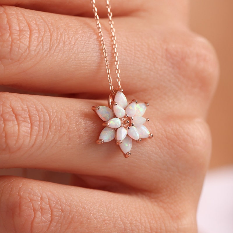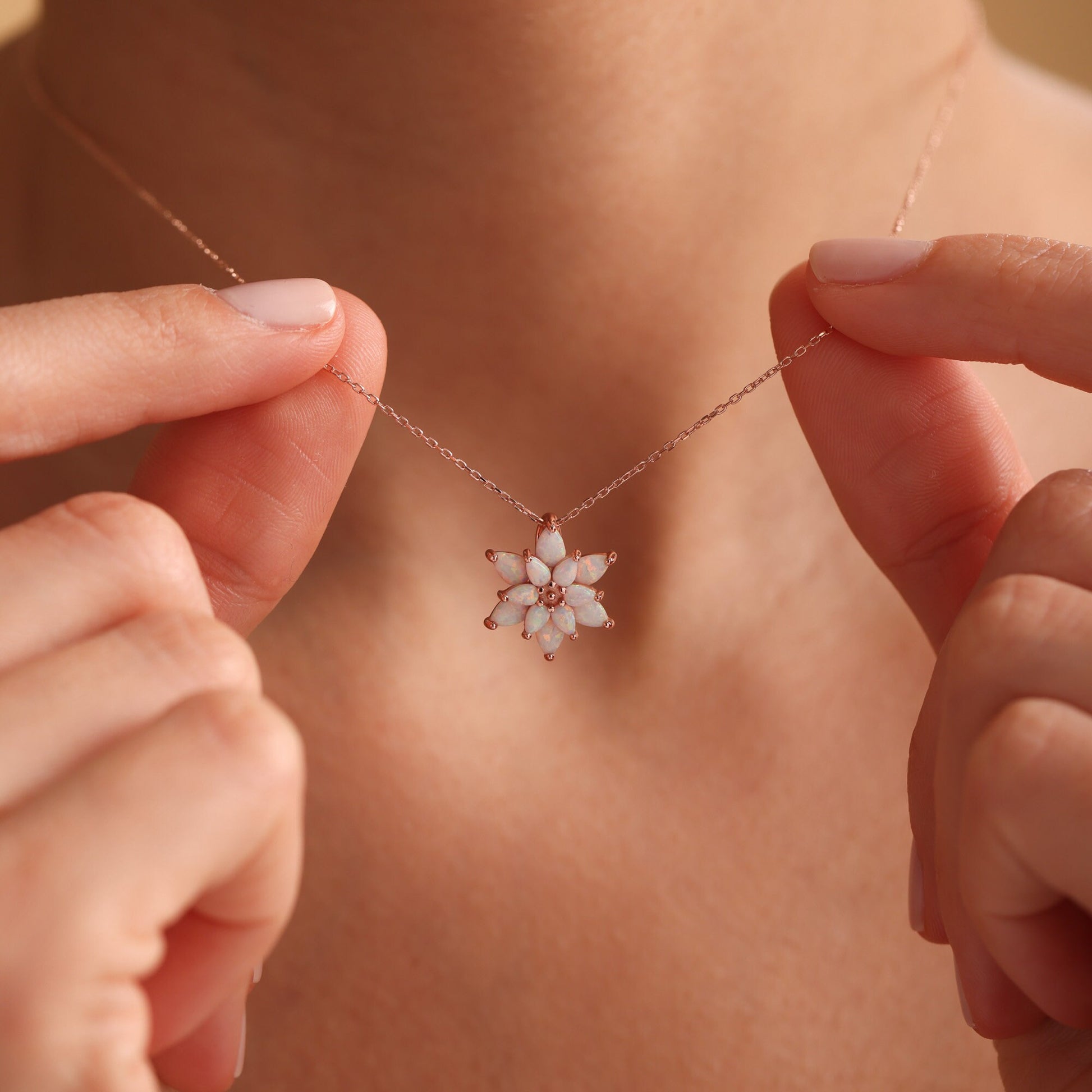 Looking for a special gift for the mom , wife in your life ? This elegant Opal Flower Necklace is the perfect necklace for everyday or special occasions.Choosing this dainty opal necklace as your Bridesmaid Necklace will make your bridesmaids happy.White Opal necklace gold will be a nice gift for mother.