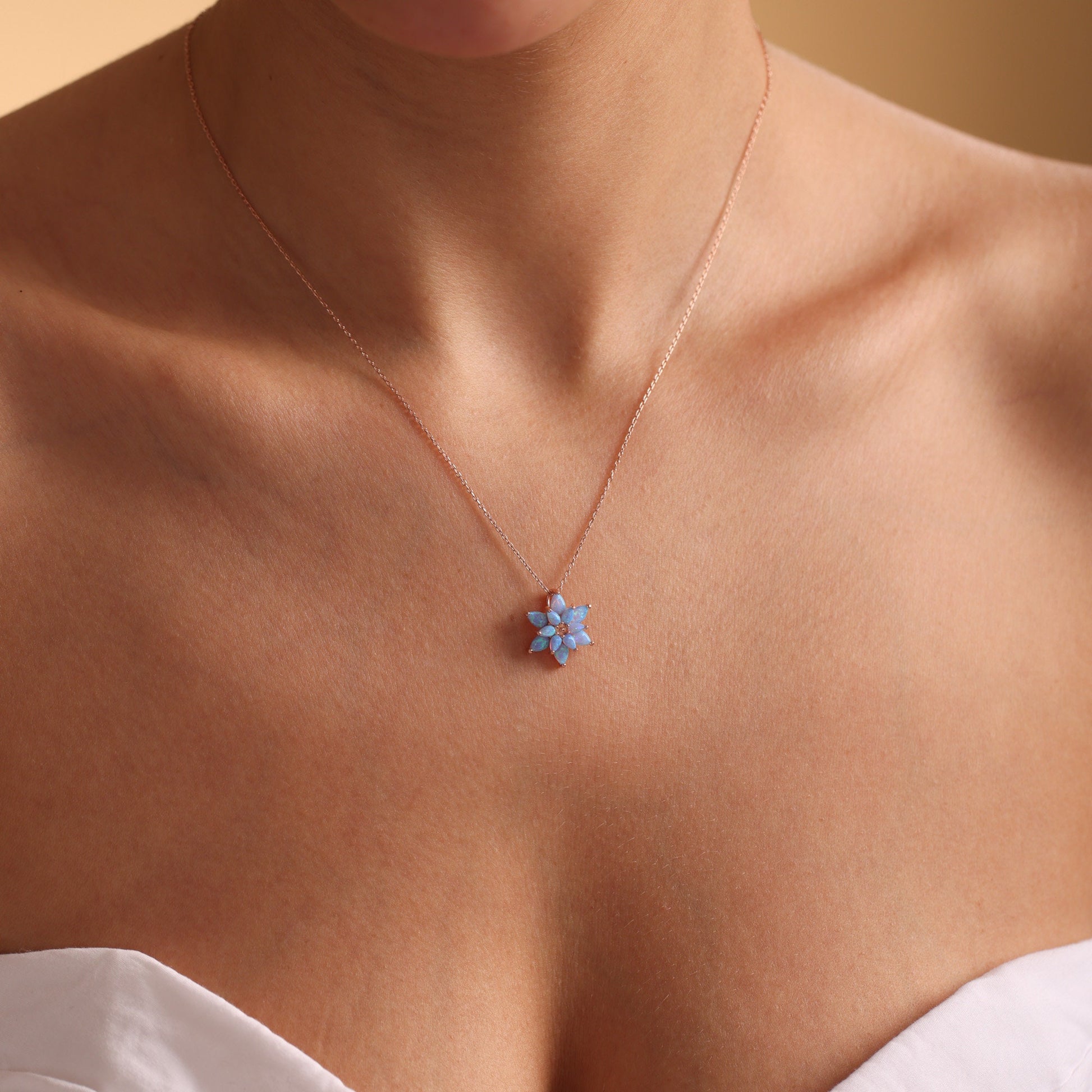 Opal Flower Necklace,Dainty Opal Necklace, Opal Flower Necklace ,White Opal Necklace Gold,Mothers Day Gift, Briedsmaid Necklace,Gift for her