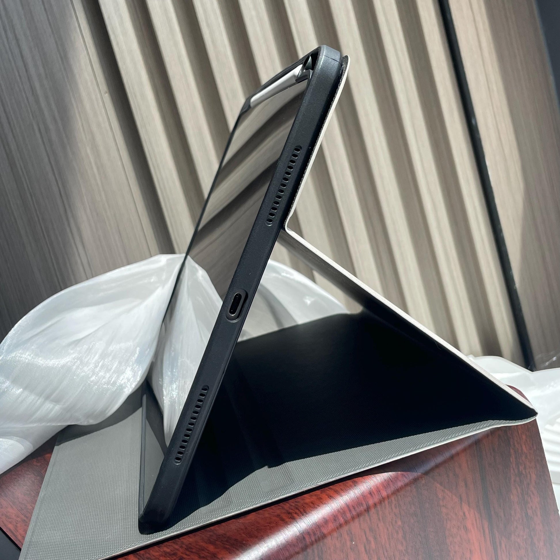 Please note that not all pen slots are located on the charging side of our iPad cases. For some models, the pen slot is positioned on the left side of the case, which prevents continuous charging and extends pen battery life. There’s a magnetic groove on the right side to enable charging without removing the case. If you need specific slot details for your model, please message us. Without a note, we will make and ship with the slot positioned randomly.