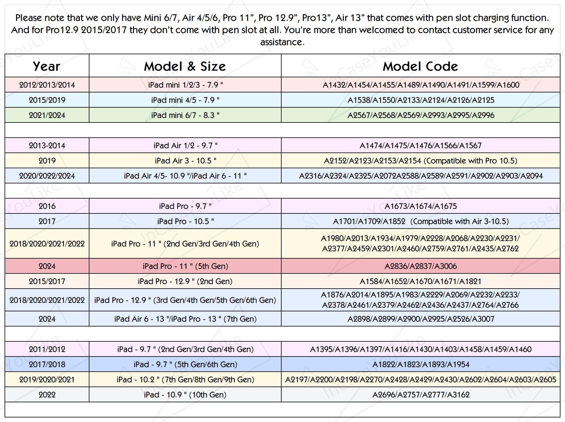 ❤ Model Identification: To verify your iPad model, go to the “General” settings on your iPad and check the "Model Name." This should include both the generation and size of your iPad.