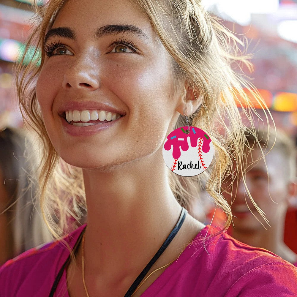 Personalized Baseball Ice Cream Drip Earrings, Fun Dessert and Sports Inspired Jewelry, Unique Baseball and Ice Cream Charm Earrings, Cute and Playful Gift for Sports Fans