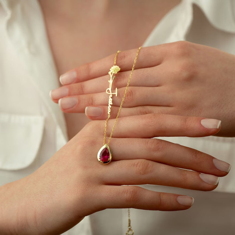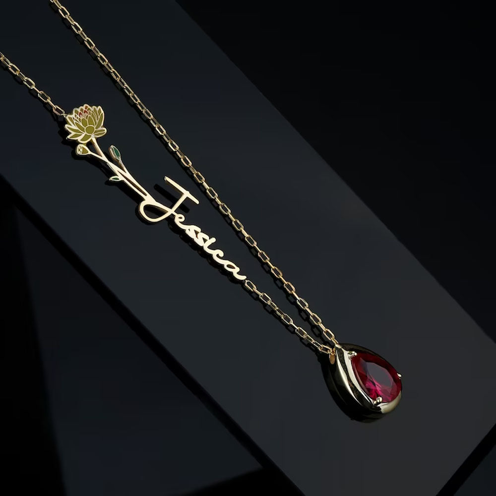 Personalized Birth Flower Necklace - This handmade birth stone with sideways name necklaces are prepared with a lot of love for your loved ones as a special gift for Valentine Day, Mother’s Day, Women’s Day, Christmas, Thanksgiving, Halloween, New Year, Hanukah and many other days.