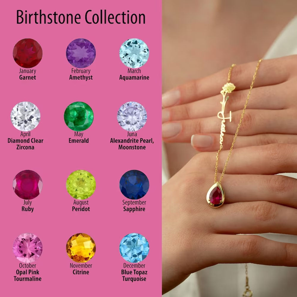 Custom Birth Stone Necklace - You can choose name, nickname, the birth flower, colored birth stone, and initials as surprise for your mother, wife, daughter, friend, or beloved ones. You can rest ensure that we will do our everything to deliver to you the best present for your special occasions such as birthdays, wedding days or even when you just want to please yourself.