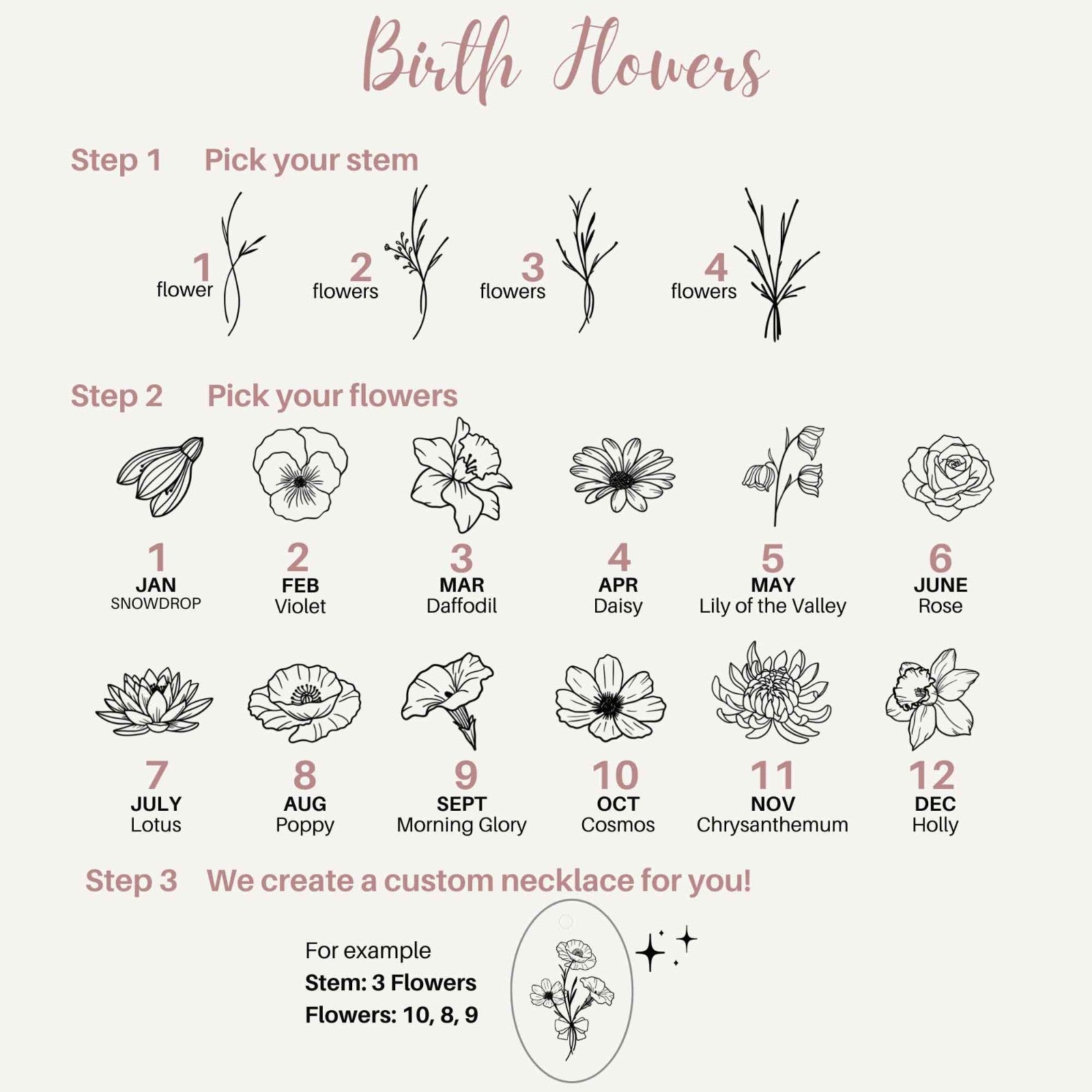 🌼 BIRTH FLOWER NECKLACE 🌼 Choose birth month flowers to create your personalized flower ring or necklace. These dainty & minimal customizable Birth Month Flower necklaces are perfect for a Mother’s Day Gift or Birthday gift as well. Give a gift that’s special and customize it with a birth month flower that’s special to you or your loved one.