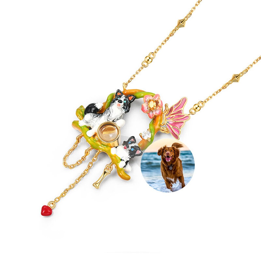 This personalized Border Collie necklace combines pets and memories. It features a cute colorful enamel dog pendant design and a hidden projection function that allows you to customize photos and quietly project your exclusive moments with your dog into the light.