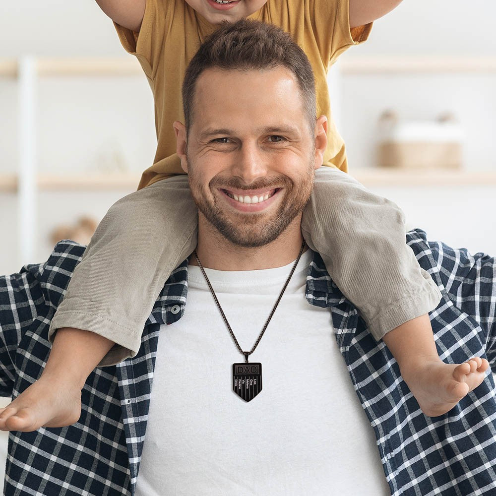 Personalized Name - This necklace is specifically designed for dads and can be personalized with the name of their child. The child's name is engraved on the necklace, creating a special and individualized piece of jewelry. It adds a touch of elegance and sophistication to the necklace, making it a stylish accessory that can be worn with pride.
