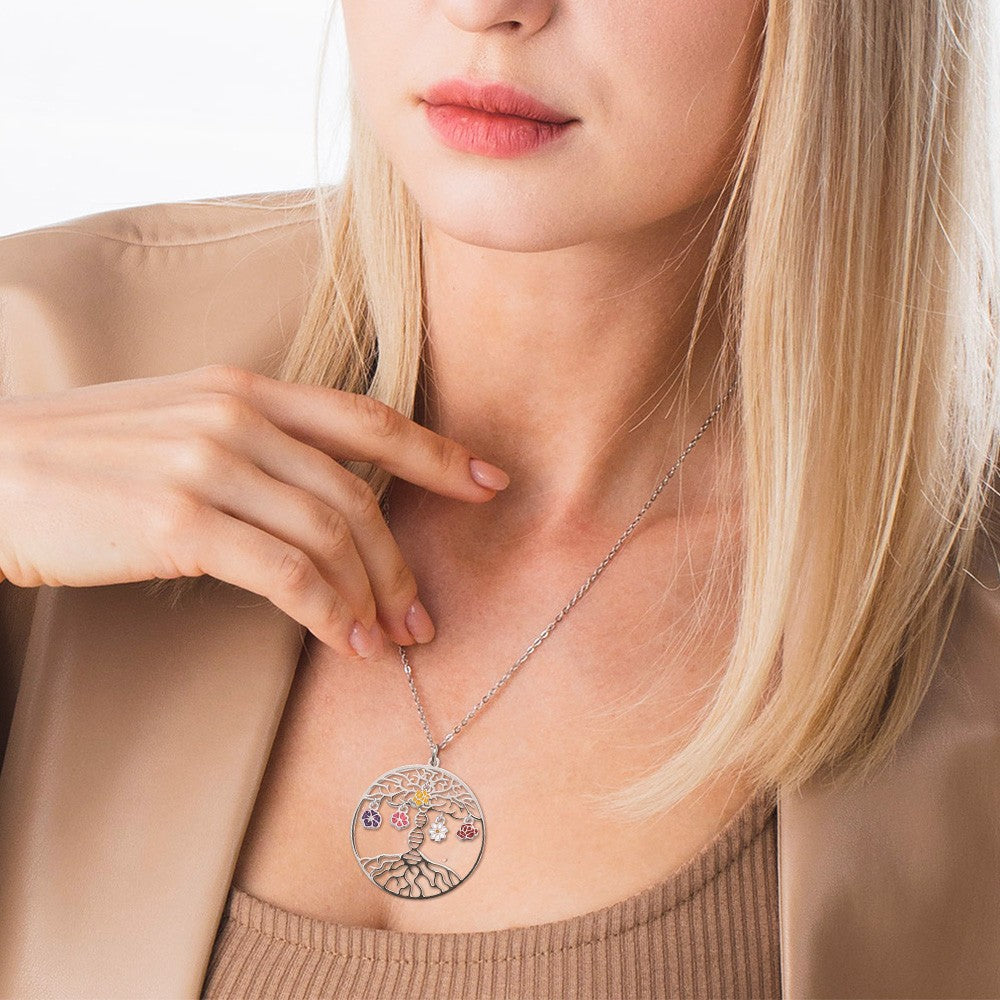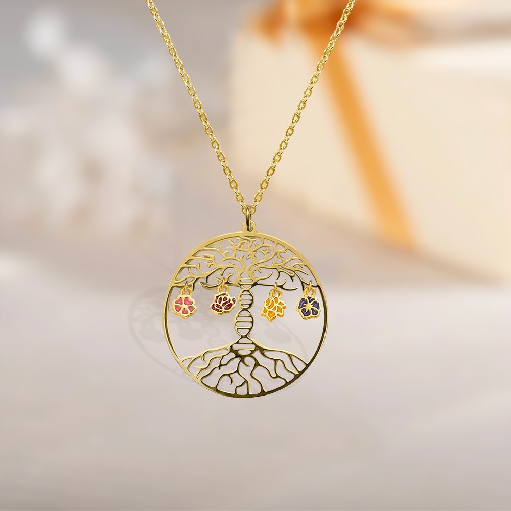 Personalized DNA Tree of Life Necklace with Birth Month Flowers - Show your appreciation to the most important woman in your life with this exquisite "To My Beautiful Mum Tree of Life Names Birthstones Necklace." This personalised necklace is the perfect birthday or anniversary gift for Mum, showcasing your love and gratitude in a unique and meaningful way.