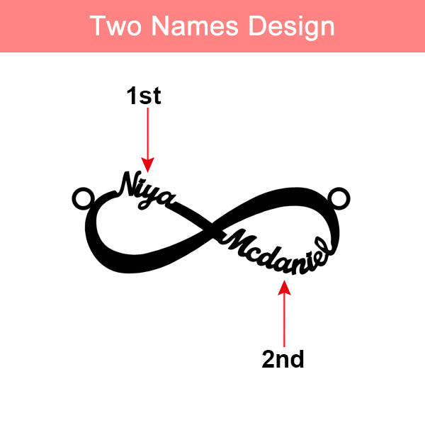 This personalized infinity family name necklace is a simple, fashionable and elegant design. Personalize it with multiple names and your favorite colors. The letters will be designed elaborately to give you a meaningful necklace with perfect detail. A good way to treat yourself, or a special gift for your lover, friends, family, or any cherished and loved one.