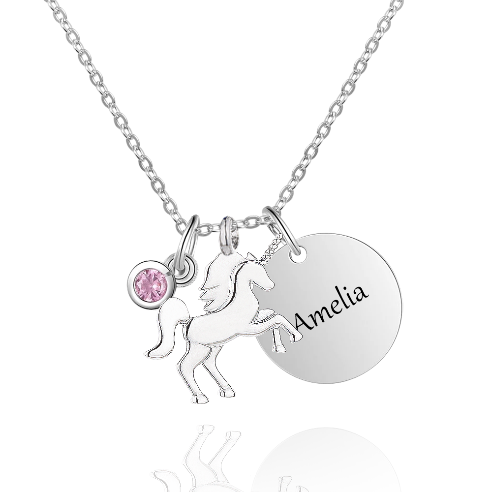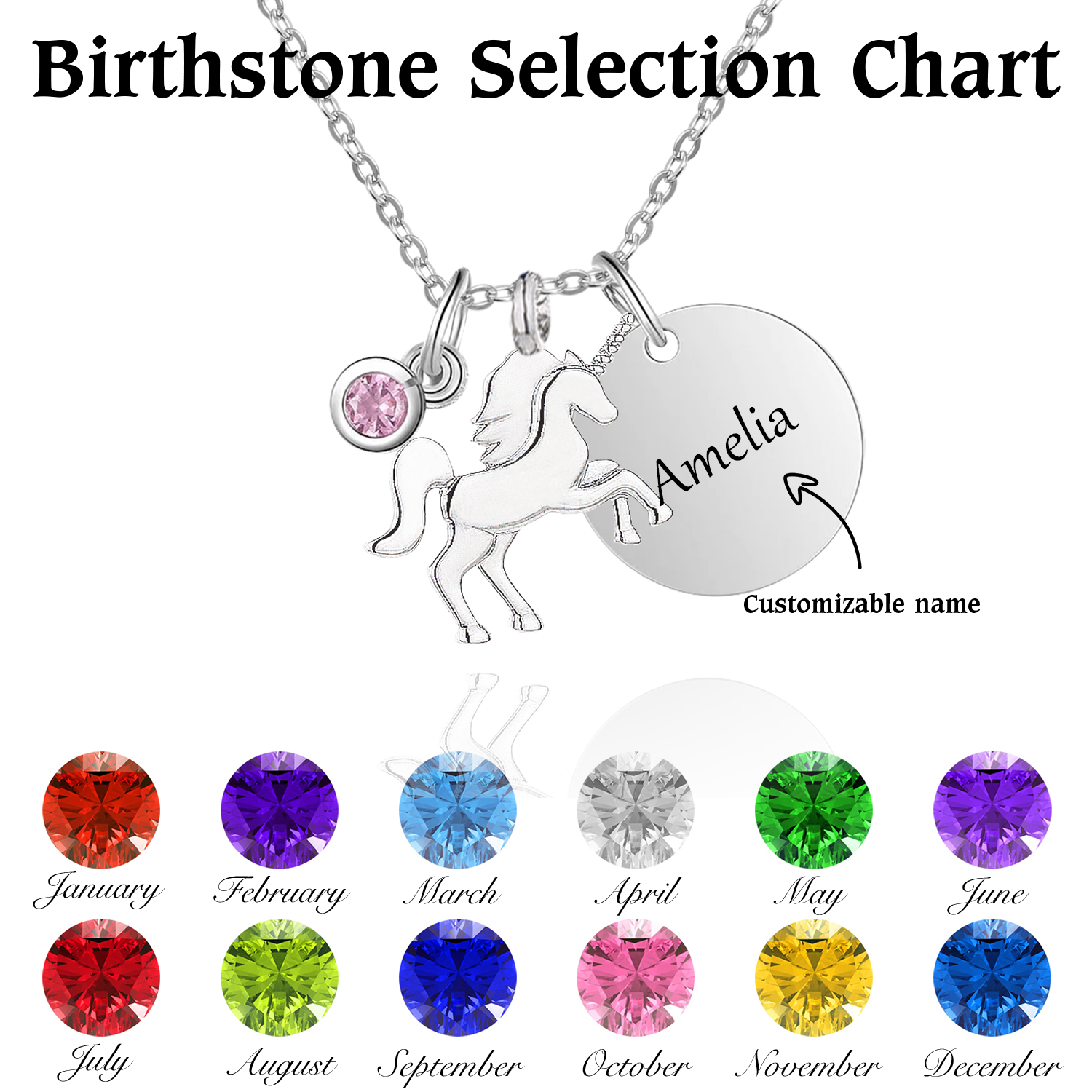 Personalized Lucky Unicorn Necklace with Birthstone, Custom Kid Name Engraved Necklace, Birthday/Children's Day Gift for Girl/Daughter/New Mom