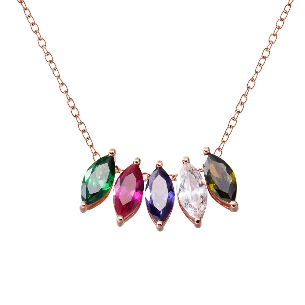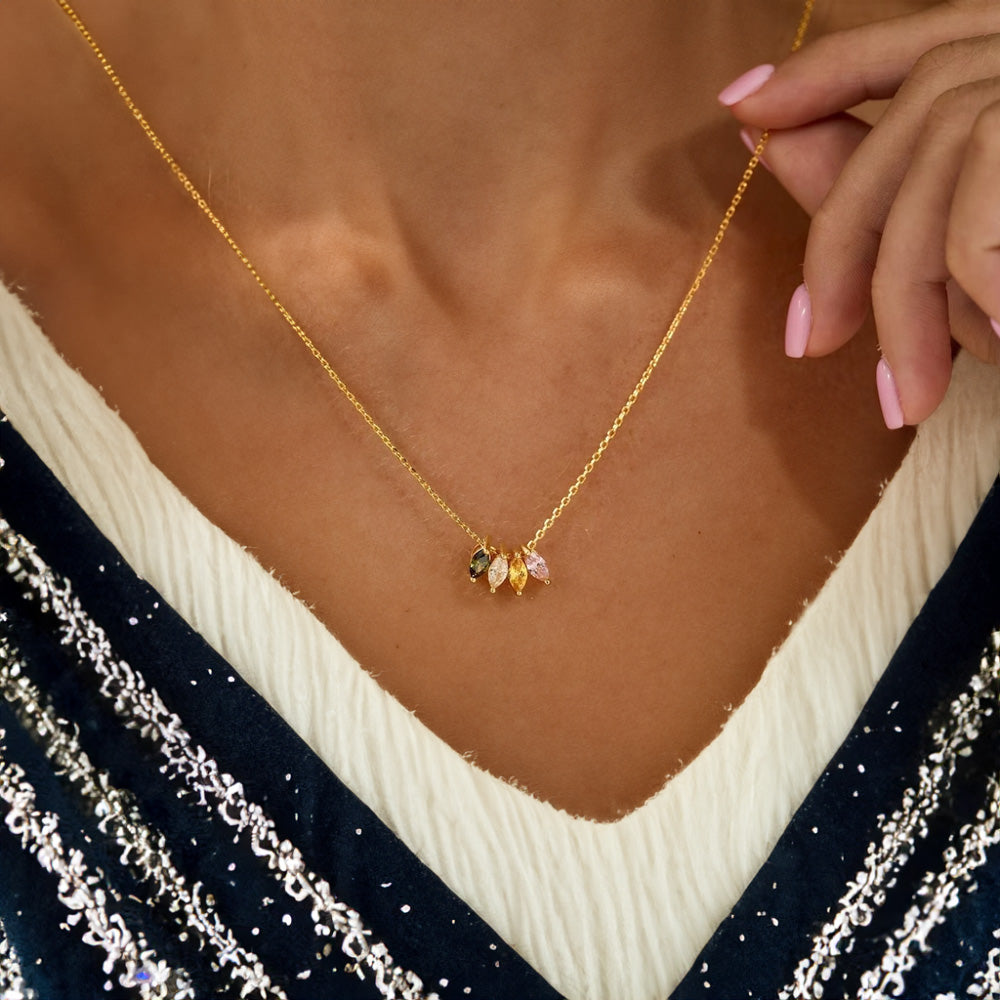 Custom Birthstones Pendant - This pendant necklace features a marquise-shaped birthstone design. It allows you to represent your family members by incorporating their corresponding birthstones into the necklace. This creates a unique and meaningful piece that celebrates your family's love and unity.