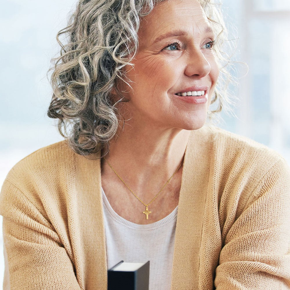 Elegant Cross Pendant - This personalized lettered cross necklace combines the timeless elegance of the classic cross symbol with the personal touch of custom lettering. Its timeless design makes it a versatile piece that can be worn daily or on special religious occasions such as baptisms, first communions, and Christmas.