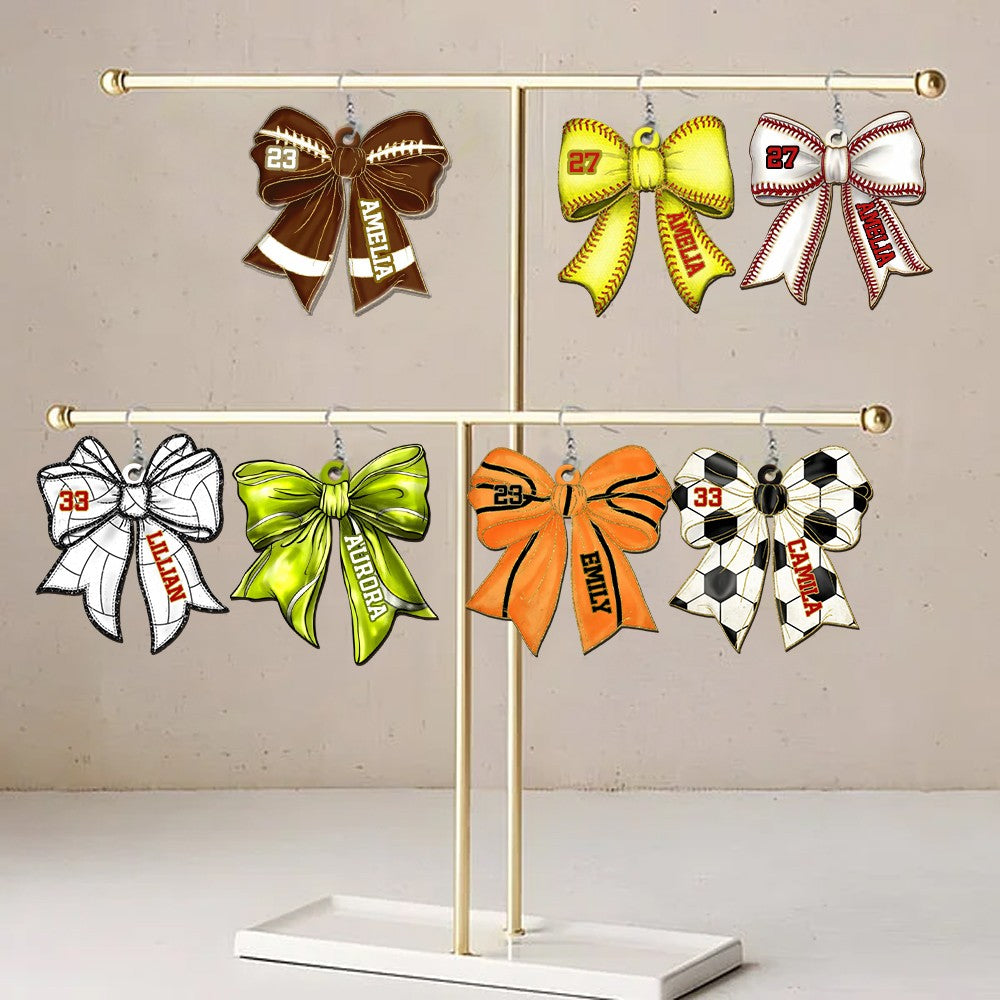 Personalized Name and Number Sports Ball Bow Earrings, Custom Acrylic Sports Jewelry, Birthday/Appreciation Gift for Sports Players/Coaches/Teammates