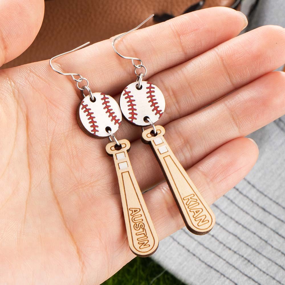 Personalized Baseball Bat Earrings - These baseball bat earrings can be customized with the name or number of players, making them a unique gift for baseball fans. You can show your love for the players when you wear these earrings to competitive events. It is also great for expressing support for children who play baseball.