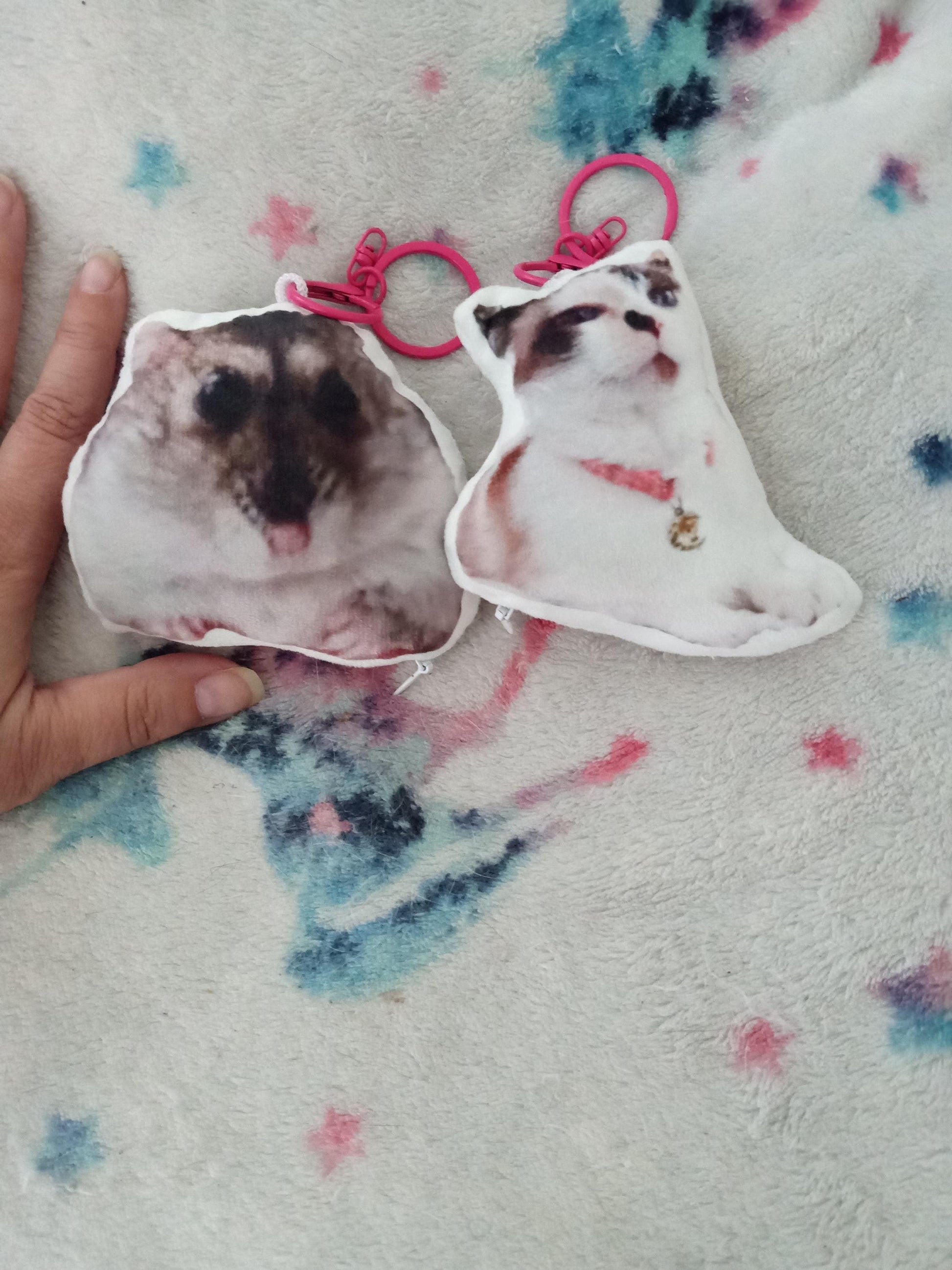 The 4''/10cm Keychain has a white edge, no matter whether you choose an ugly pet pillow or a realistic pet pillow.