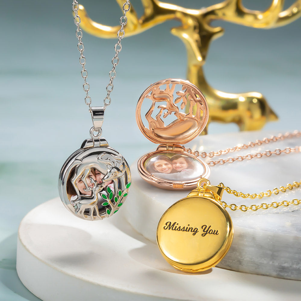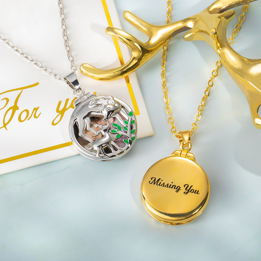 Delicately designed, our elk photo necklace makes a perfect way to express love by the pendant, which can be customized with a photo of your cherished and an engraving. Also can be opened or closed as you want.
