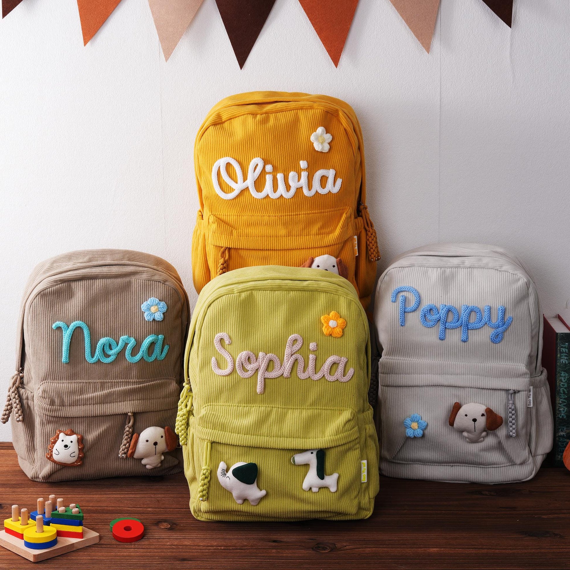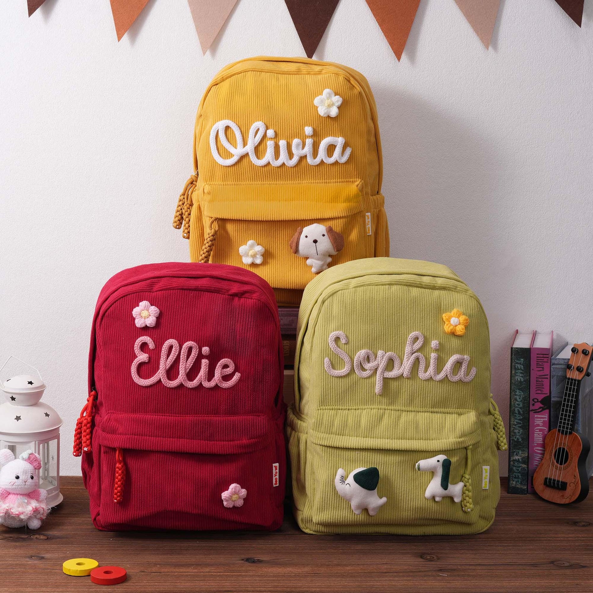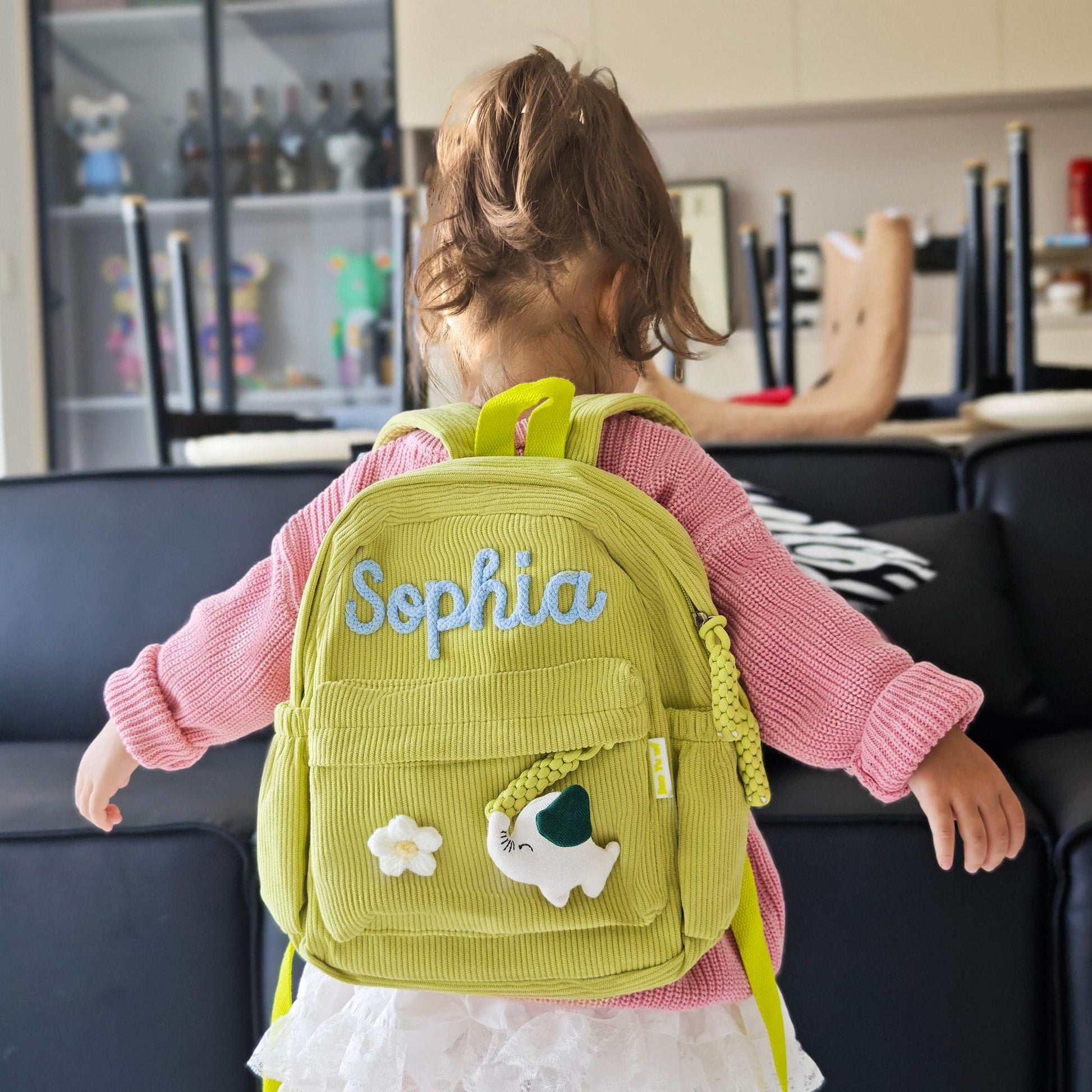 Personalized Kids Corduroy Backpack, Custom Kids Toddler School Bag Toddlers Gift backpack Birthday Monogram Backpacks Book Bags Name Children's Baby's Preschool Cute Mini Girls Boys