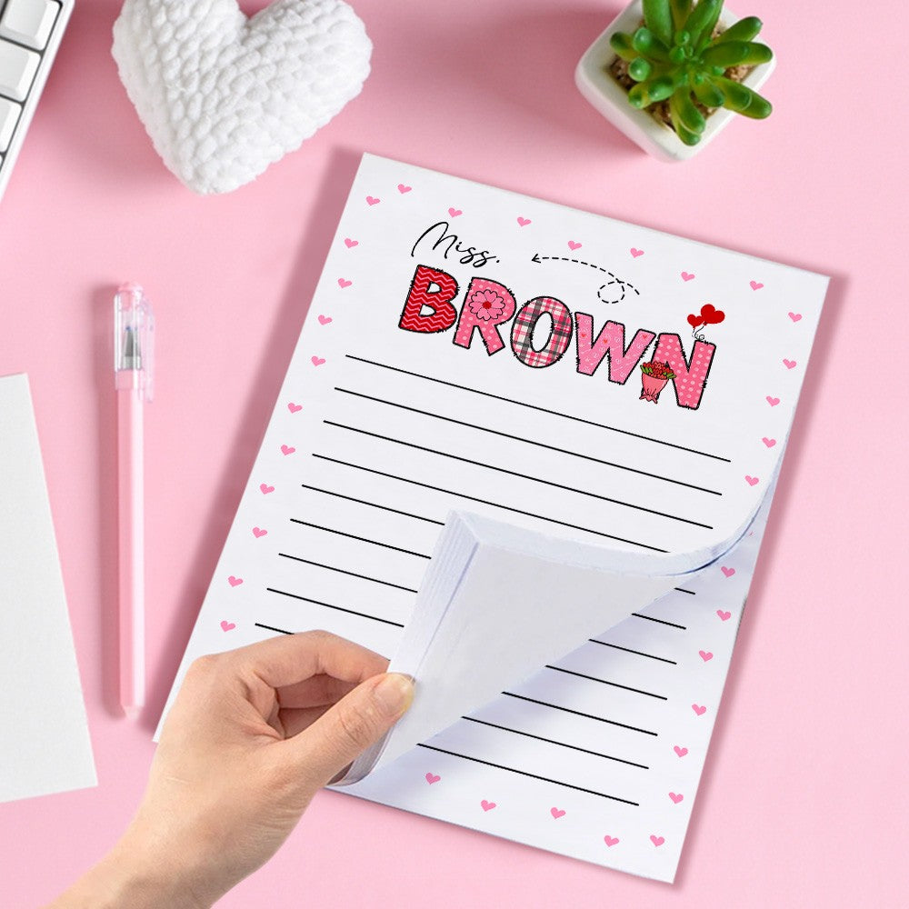 Personalized Valentine's Day Teacher Notebook - This customizable Valentine's Day teacher notebook combines a sweet heart pattern with a personalized name customization function, making it a special gift for teachers.