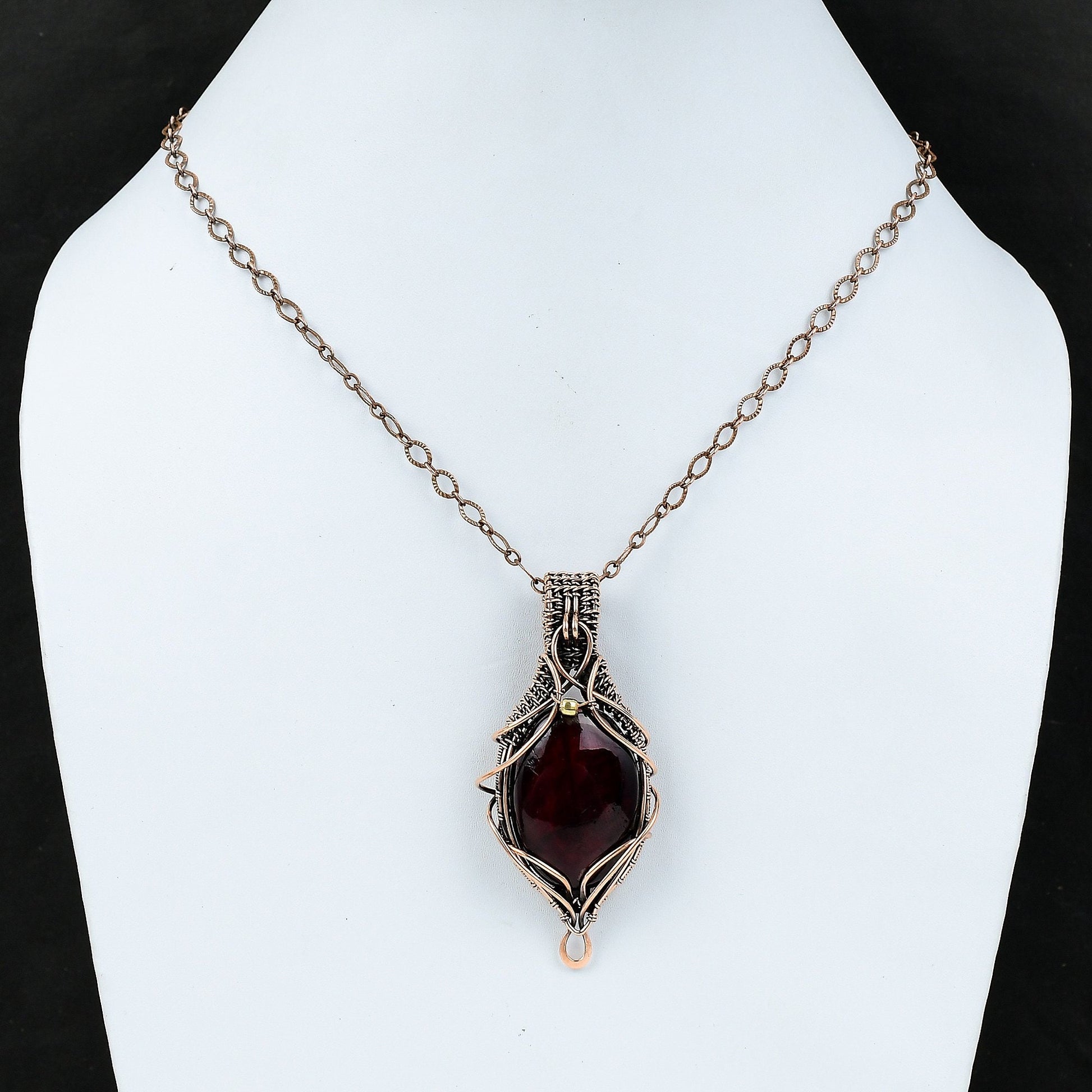 Custom Bohemian-Inspired Design - This necklace features a Bohemian-inspired design with copper wire wrapping around the gemstone, adding a touch of free-spirited charm and artistic flair to the piece.