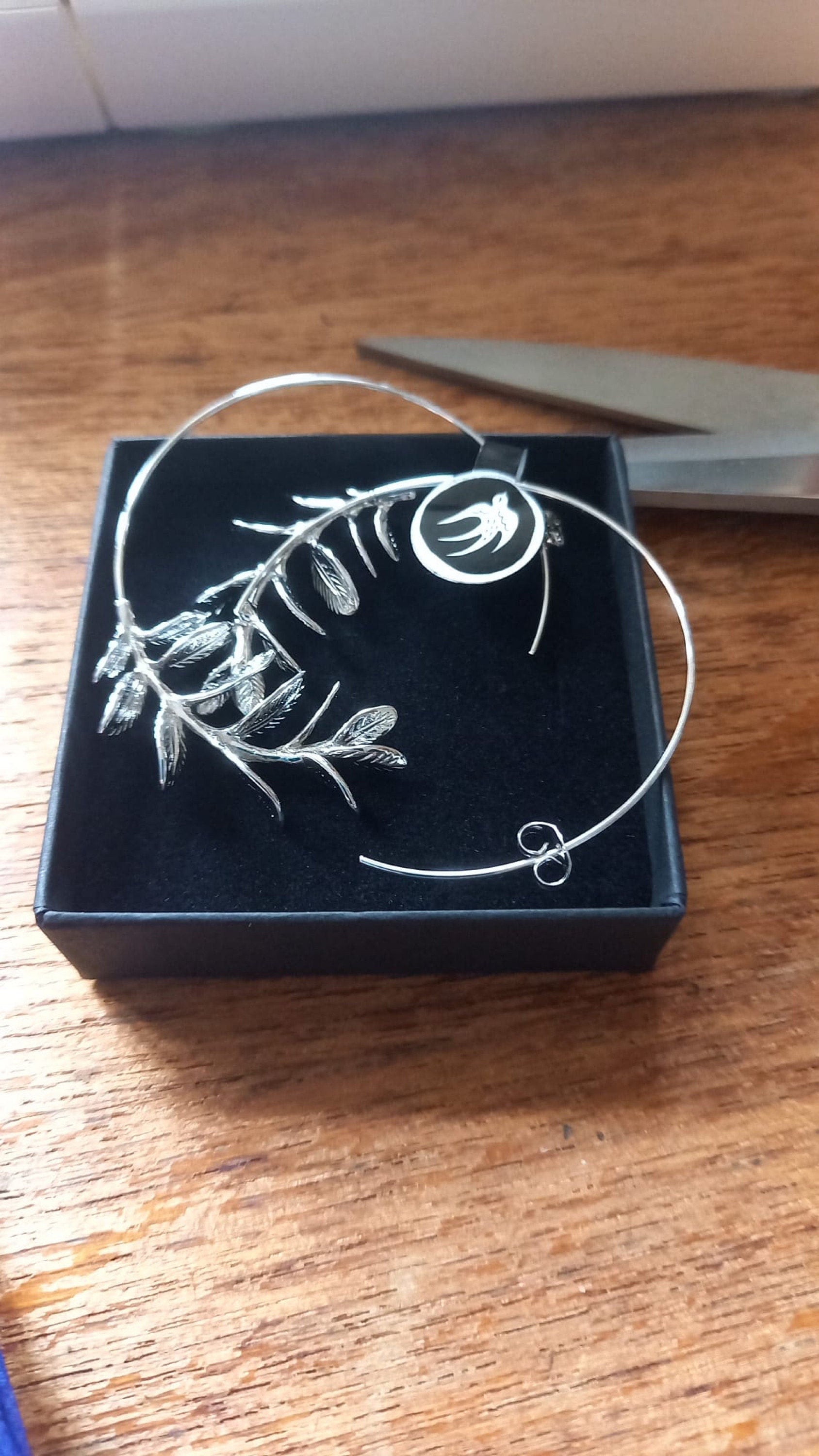 These rosemary leaf hoop earrings are made from solid brass with some amazing detail on the leaves. They feature a detailed botanical sprig of leaves, in a choice of silver or gold plating.