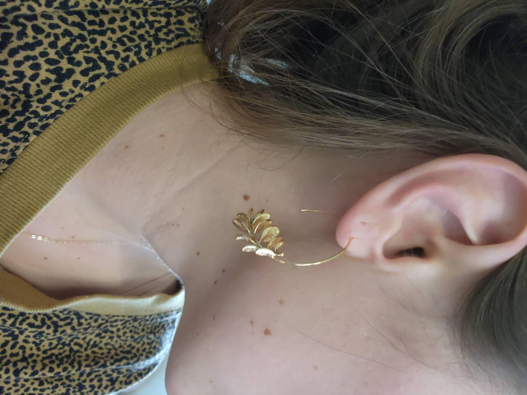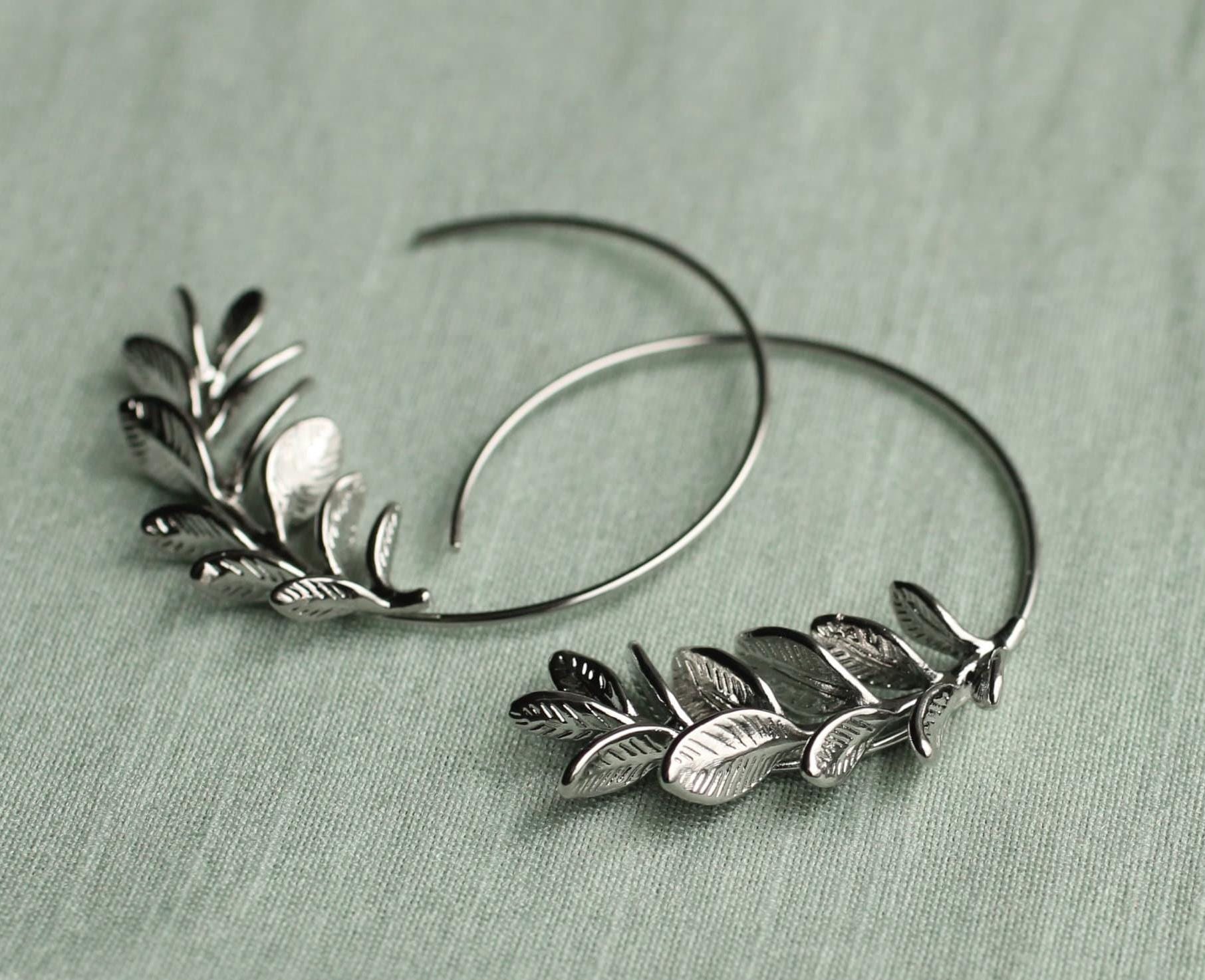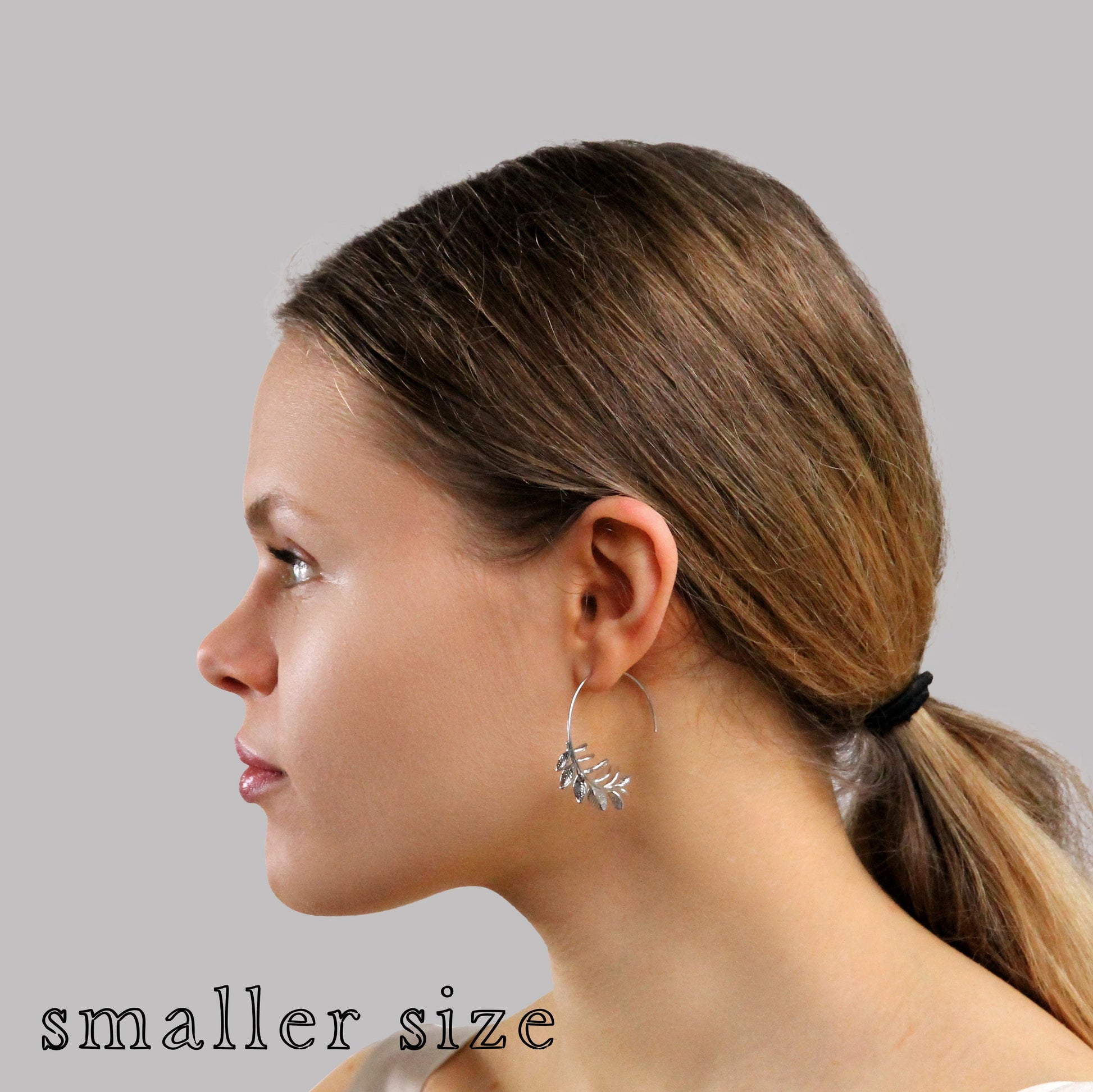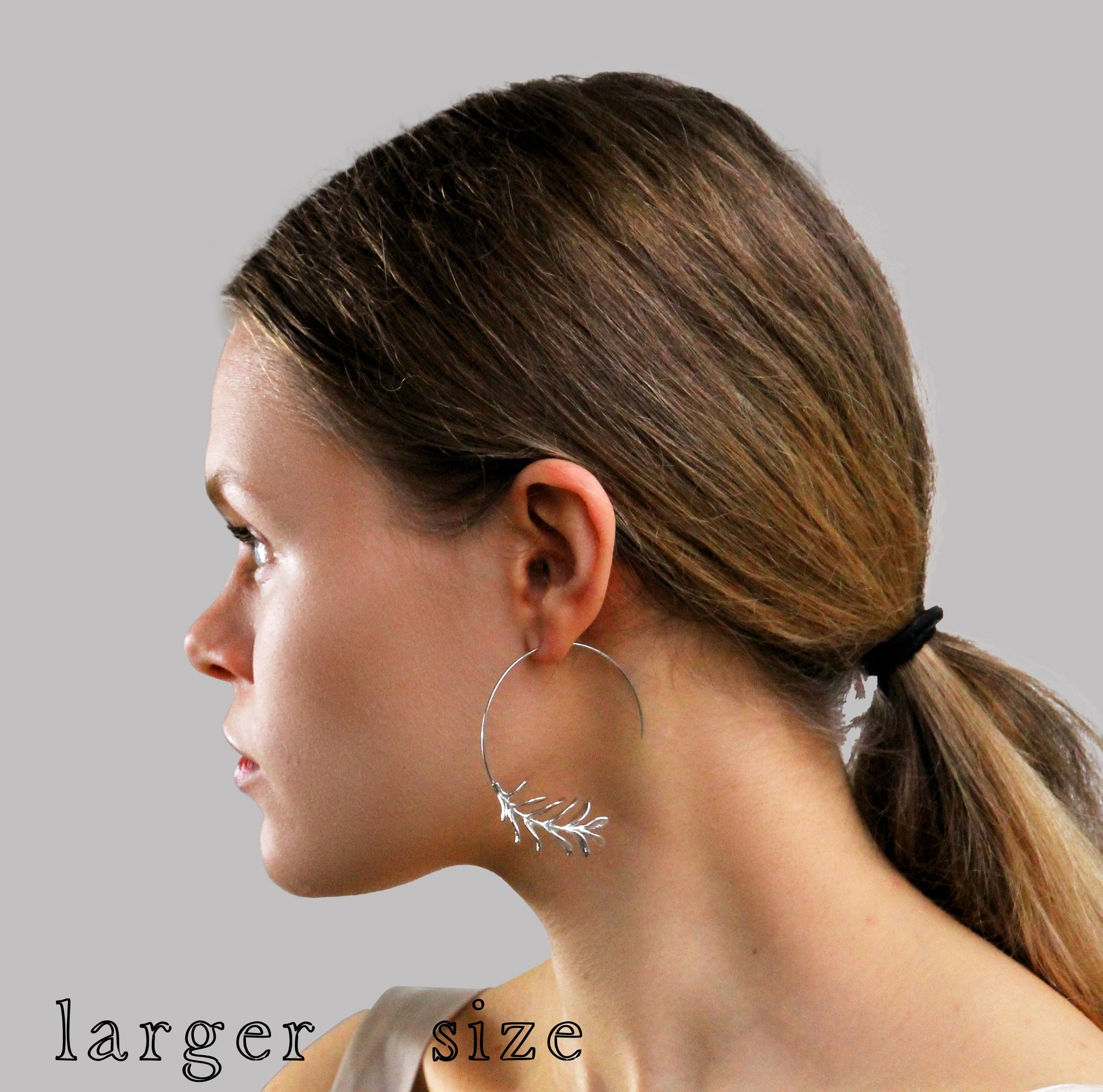 Rosemary Leaf Hoop Earrings, Gold Silver Leaf Hoop Earrings, Realistic Twig Branch Earrings, Gift for Best Friend, 30th Birthday Gift