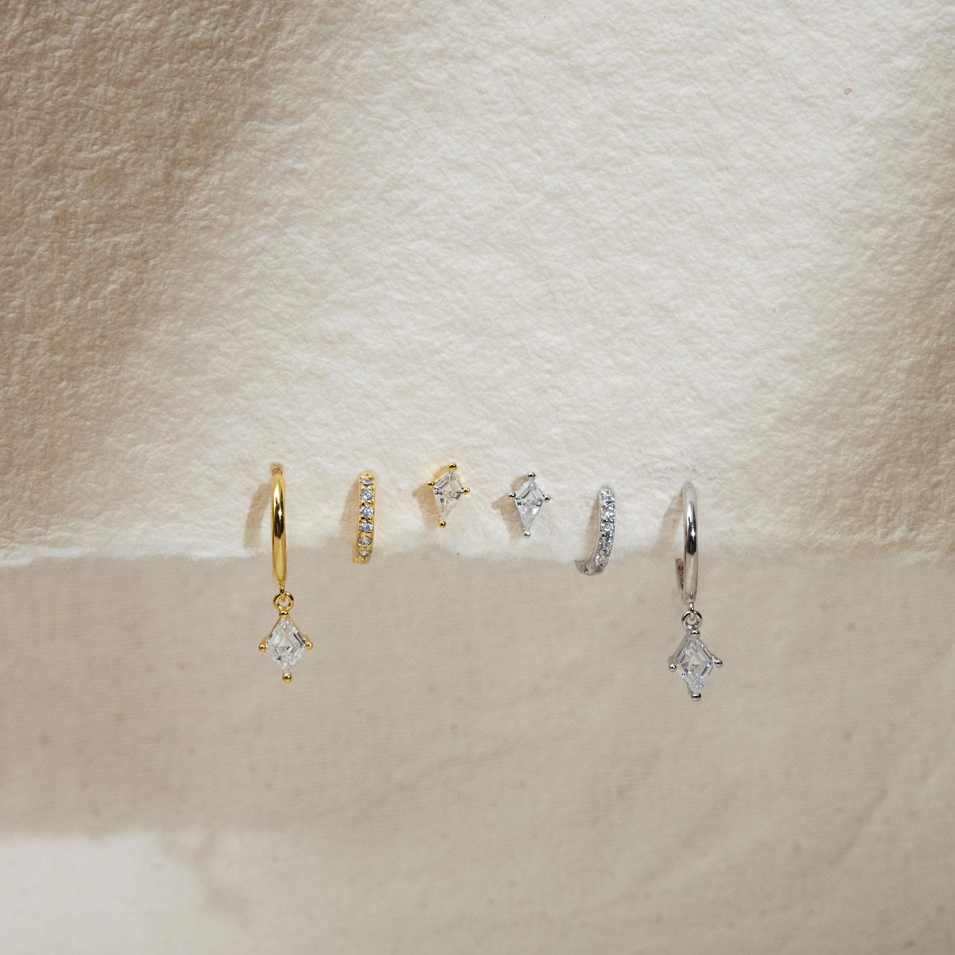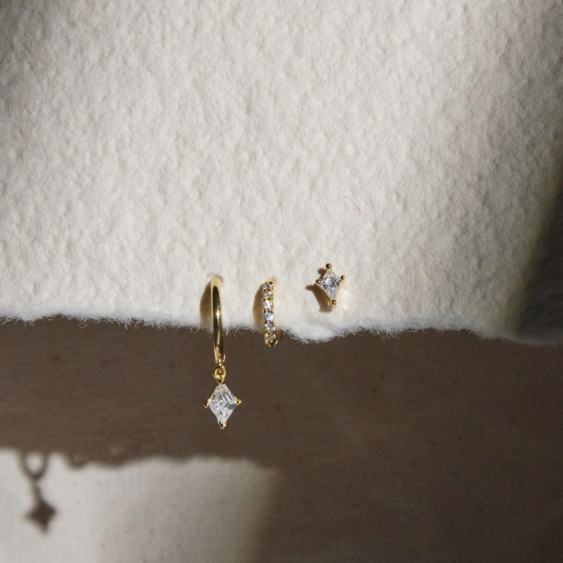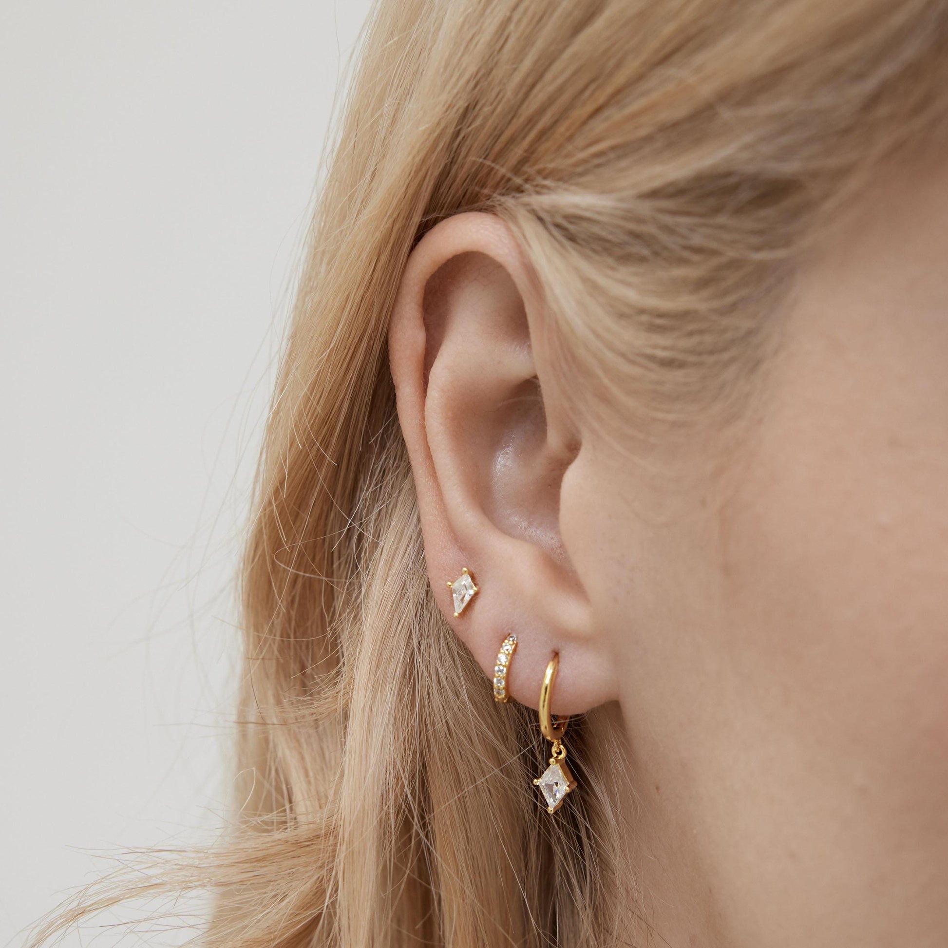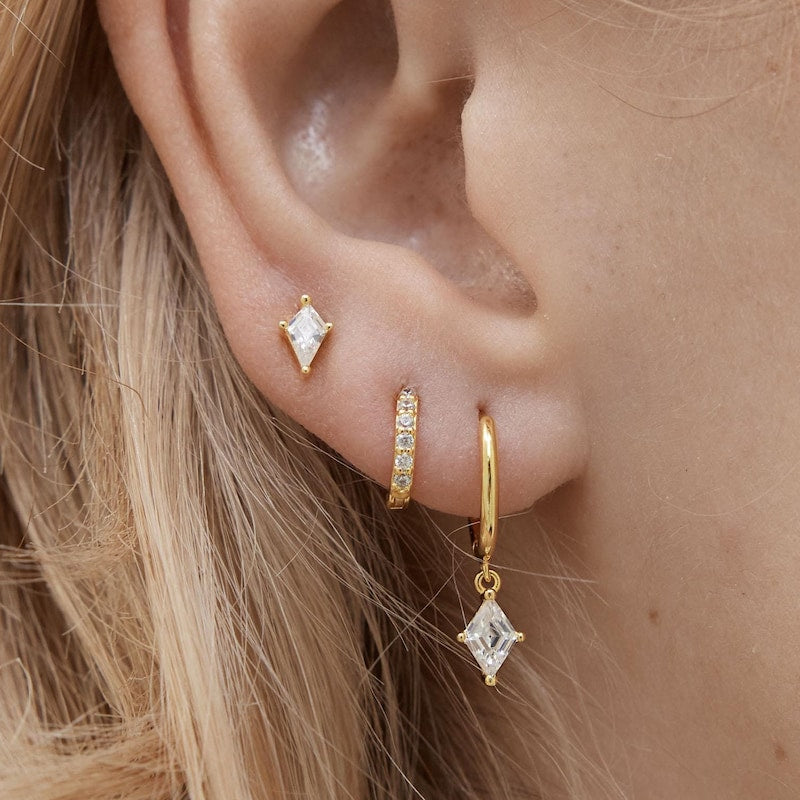 Design: Sleek huggie hoops paired with a dainty dangling accent for a chic and refined silhouette.
