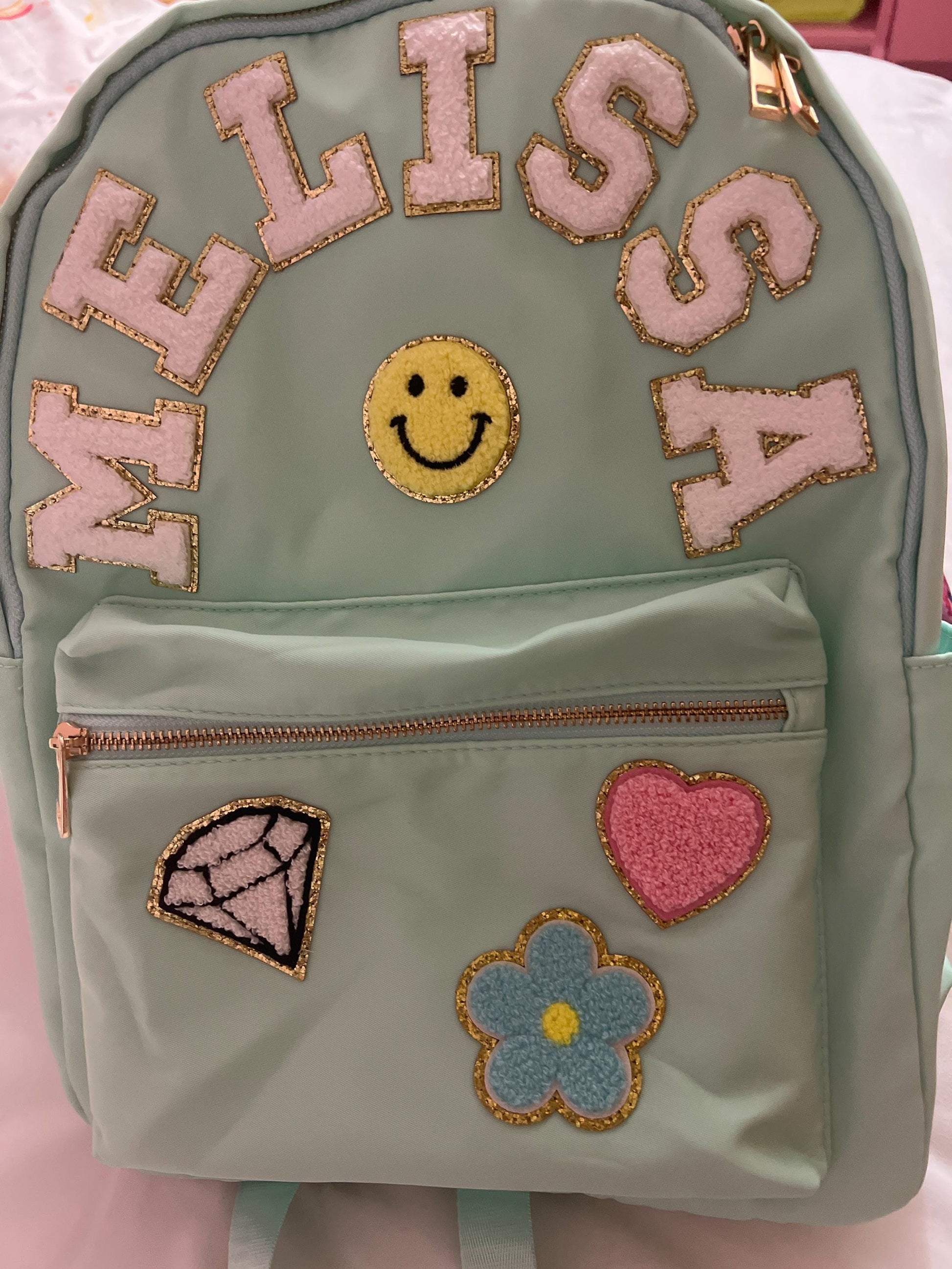 Sewn Patches Backpack Personalized Nylon Backpack with Patch Chenille Letter Custom School Bag Kids Back to School Lunch Box Bag Lunch Bag