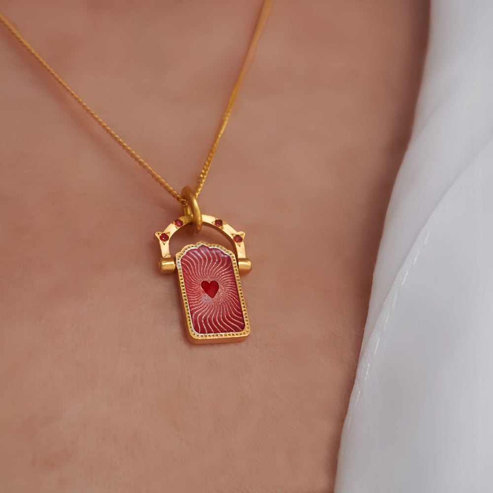 The design of the necklace is inspired by Tarot cards. The exquisite pattern on the pendant represents a profound symbolic meaning. It can swing freely with the wearer's movements, adding a sense of fluidity and unique visual charm. The pendant is made of sturdy and light material, suitable for daily wear, and its meticulous craftsmanship makes every detail a tribute to Tarot culture.