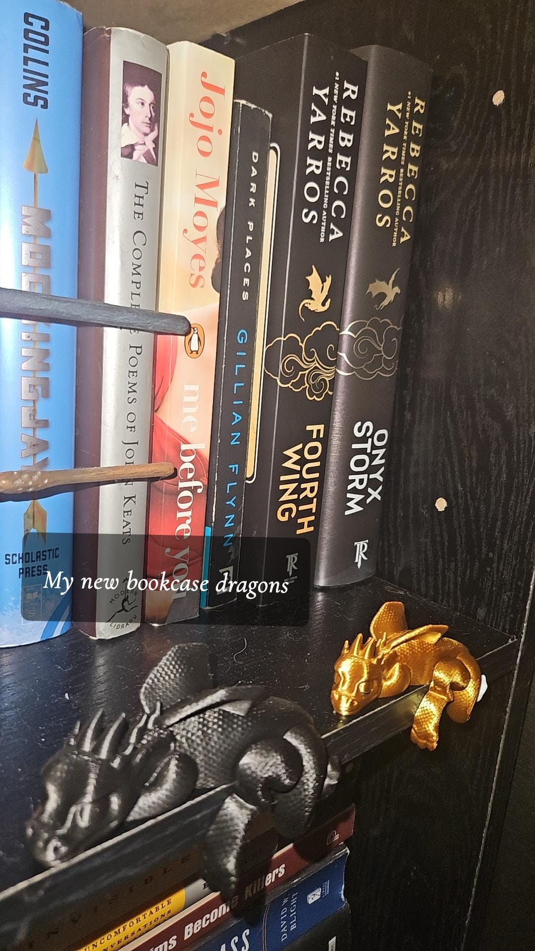 Sleeping Dragon Bookshelf Sitter | Dragon Bookshelf Decor | Multicolor Dragon Figurine | Fourth Wing Inspired | Black and Gold Dragons