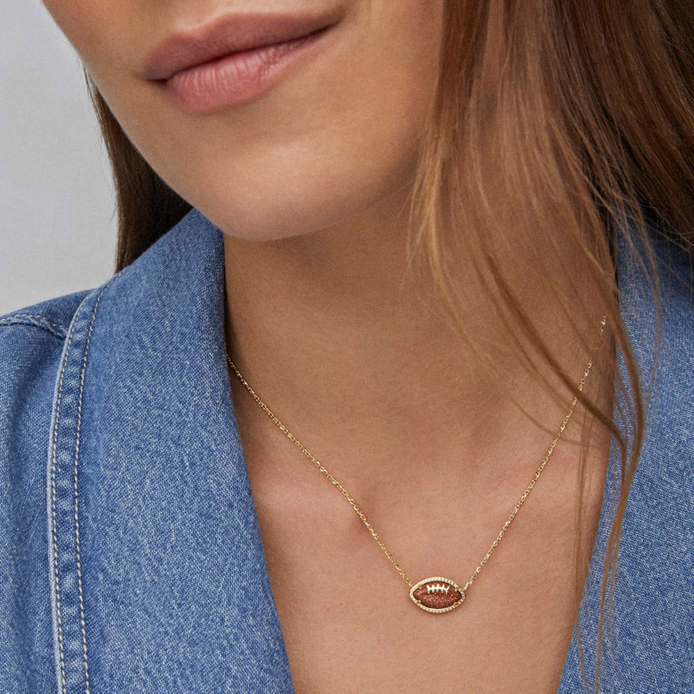 Sparkling Orange Goldstone Football Pendant Necklace, Perfect Gift for Sports Lovers