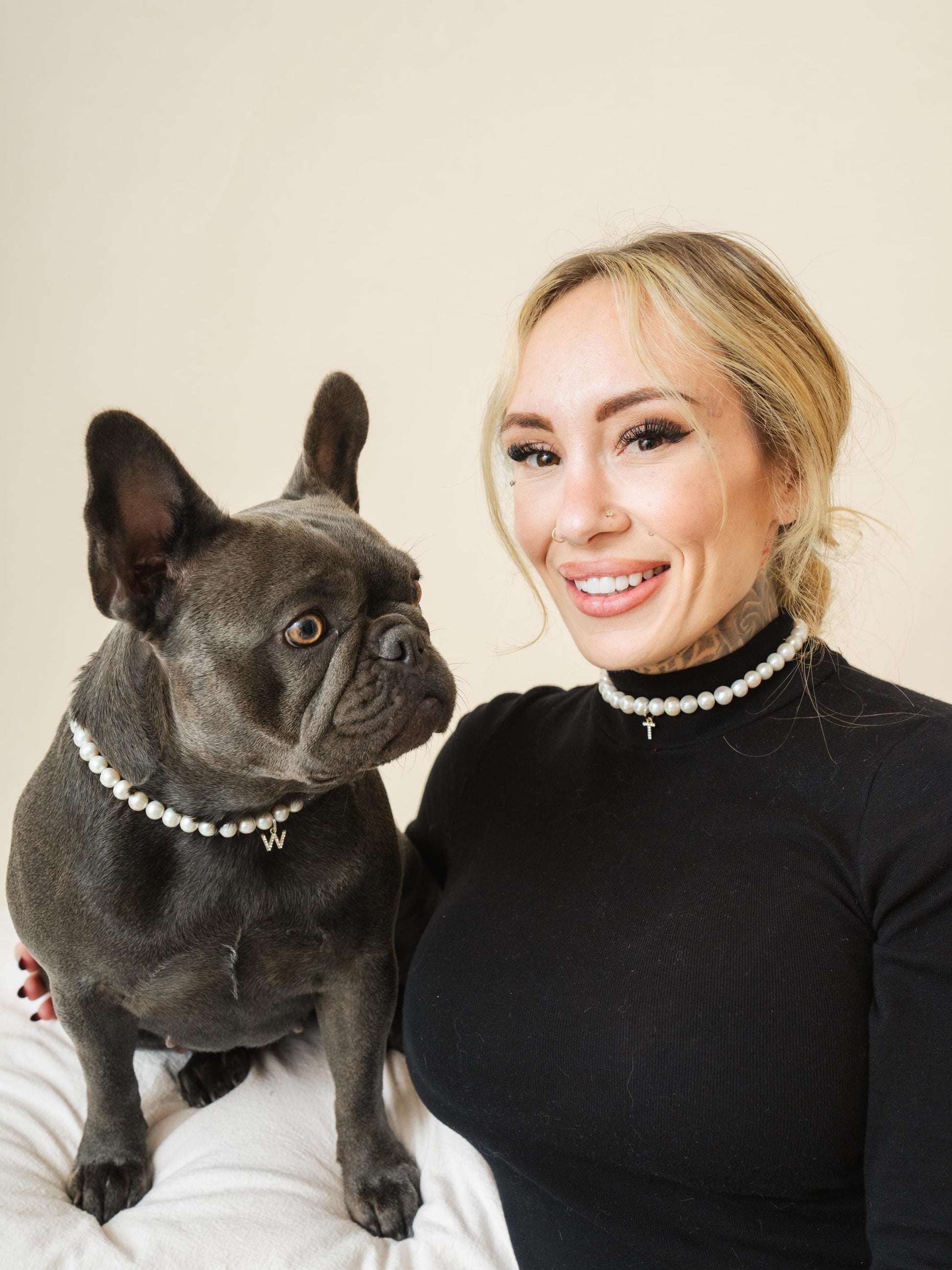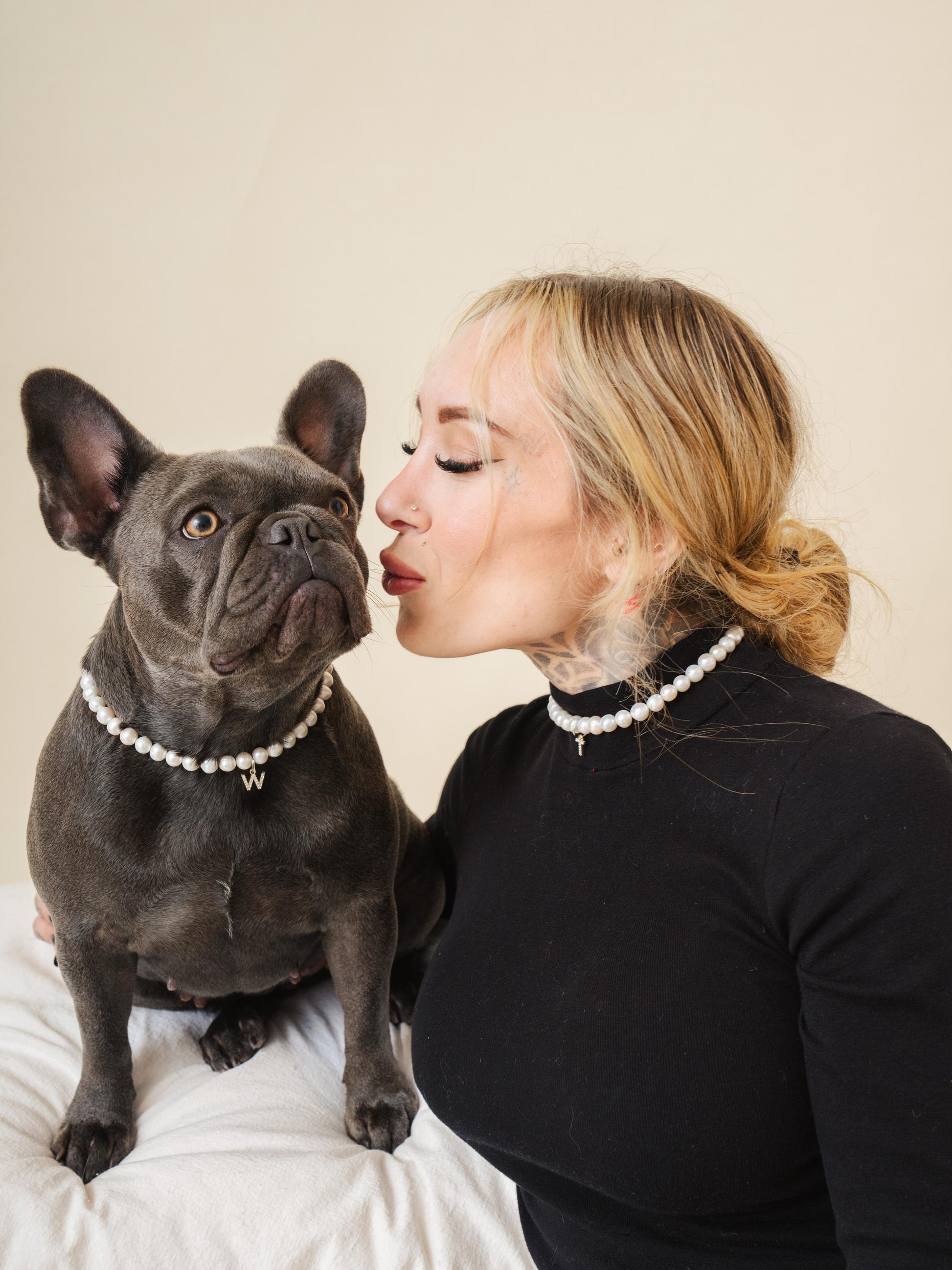 Made with 100% pet safe faux pearls, each necklace is handmade with an easy to use buckle and reinforced stainless steel chain to ensure safety. It is the perfect show of love for you and your fur baby, an inseparable pair.