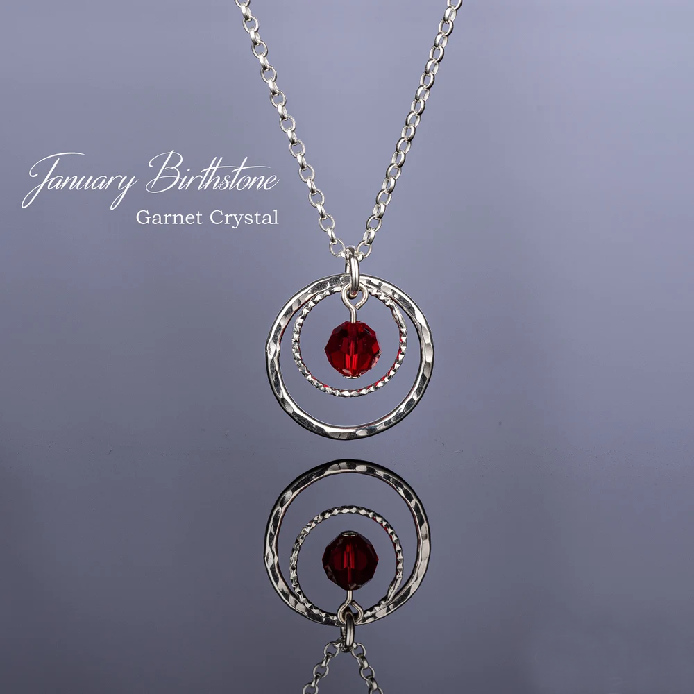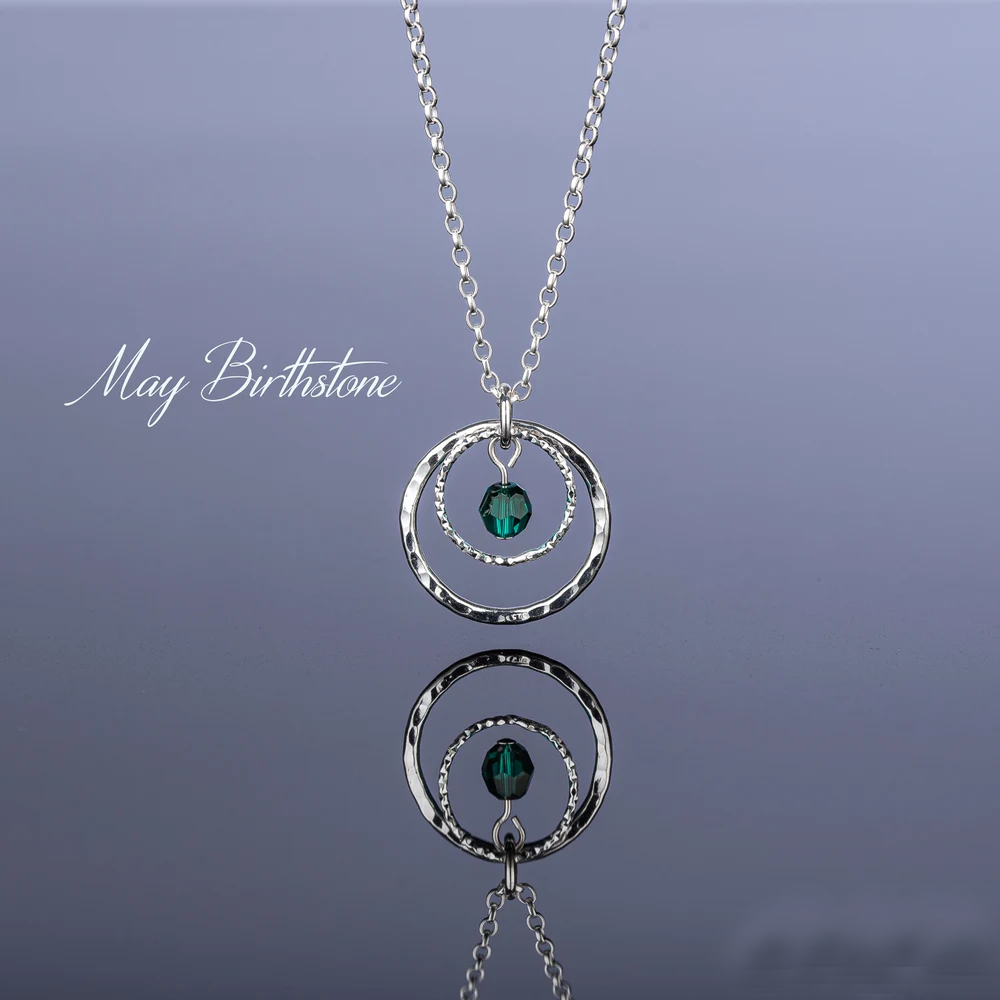 Sterling Silver Circle of Life Necklace, Birthstone Jewellery, Birthday Gift for Women