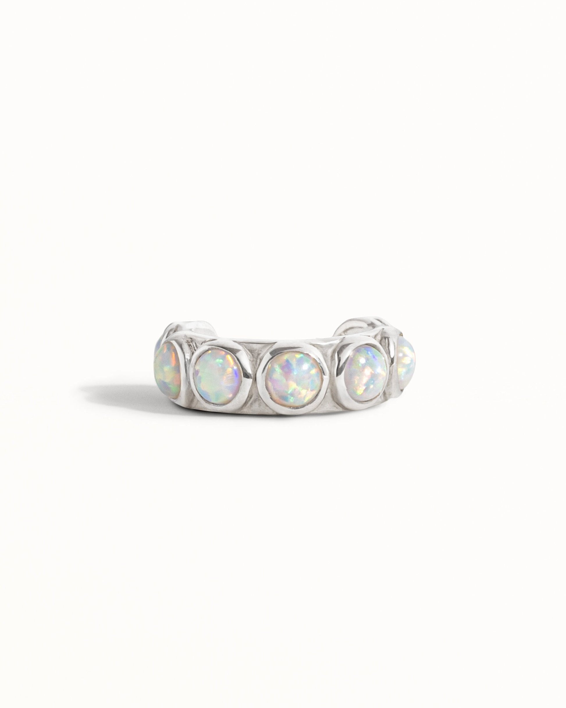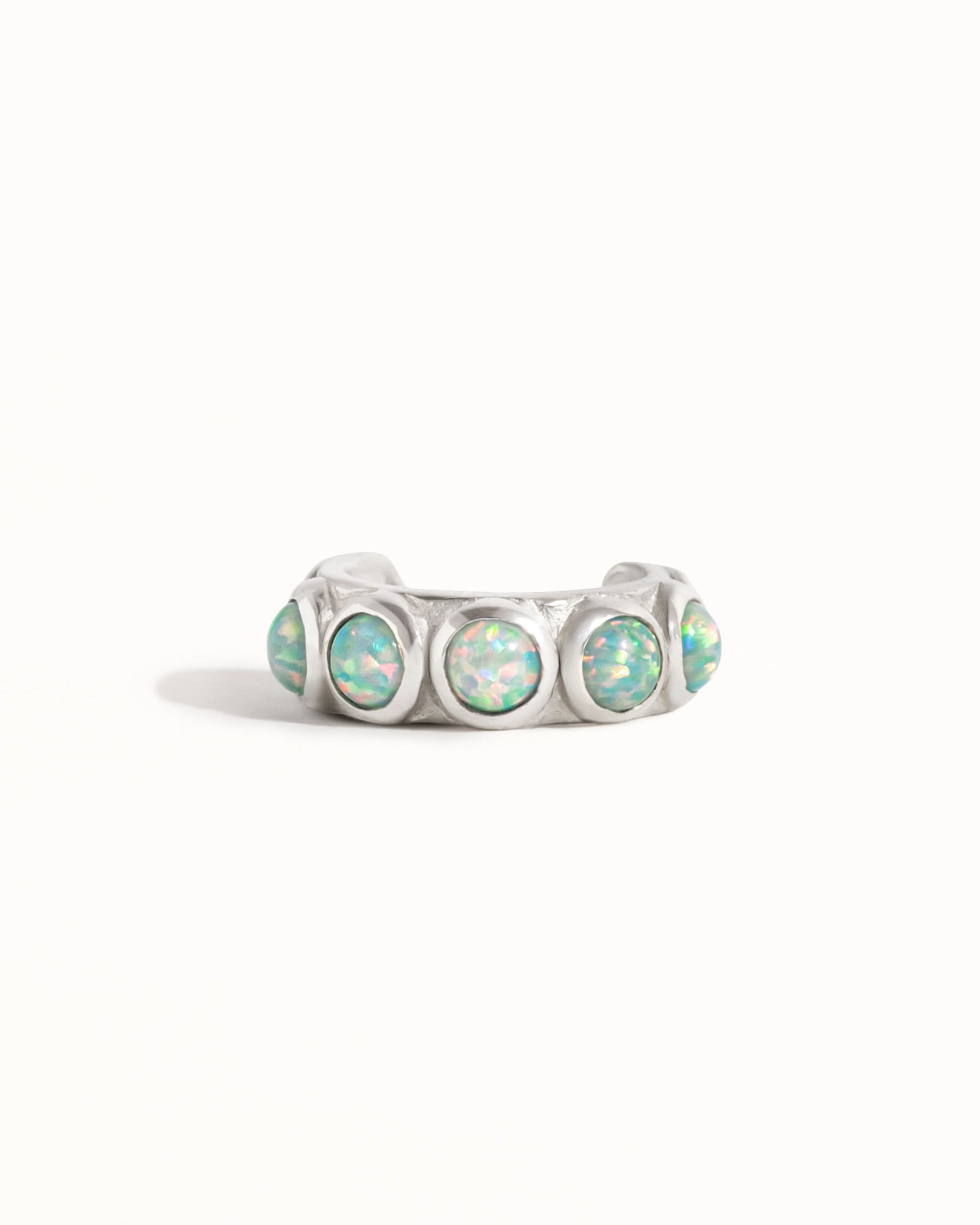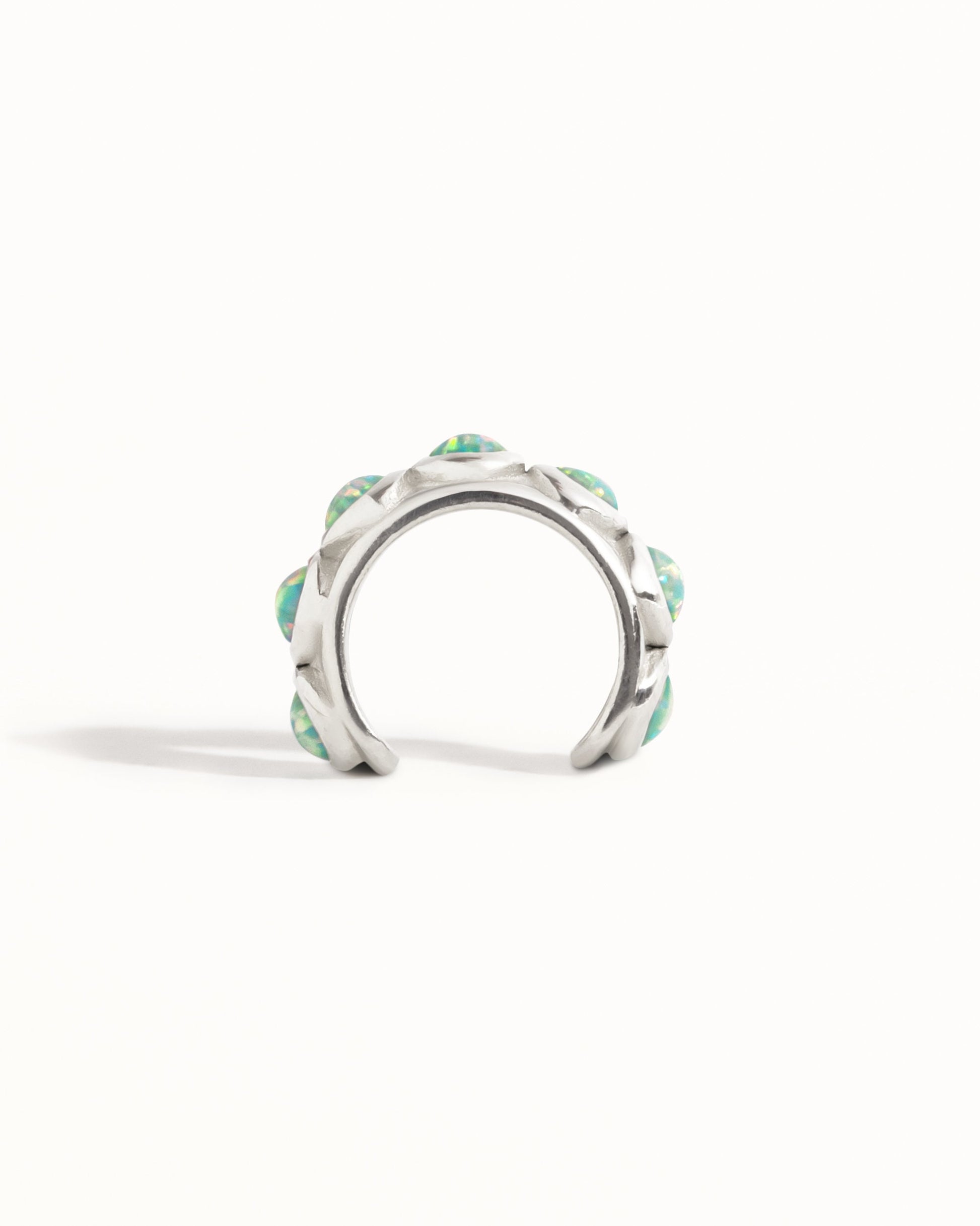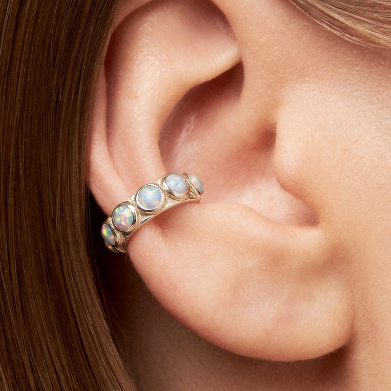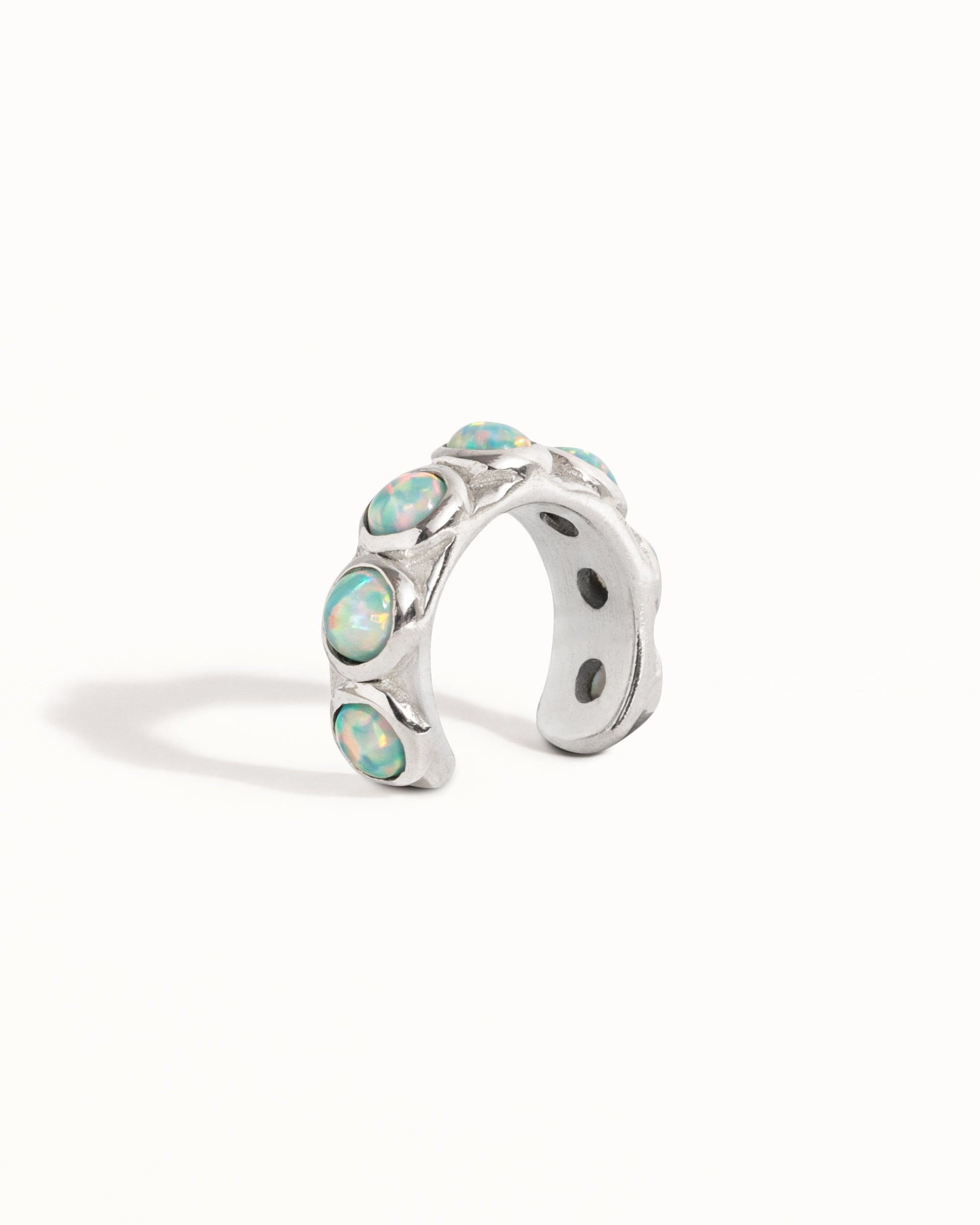 Blue Opal Stones Ear Cuff Earring cast in solid Sterling Silver with and shiny polish finish. This ear cuff design is available in one size, 9mm inside diameter (almost 3/8") . Sold by piece (not in pairs)