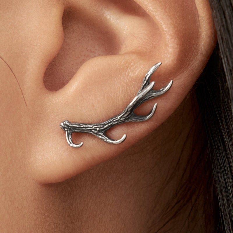 Sterling Silver Ear Cuff Earrings Antler Deer Earpin Boho Ear Crawler Wrap Earring Bohemian 925 Jewelry Gift Best Christmas Gift - FES006