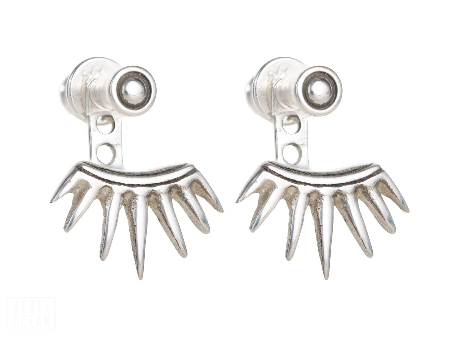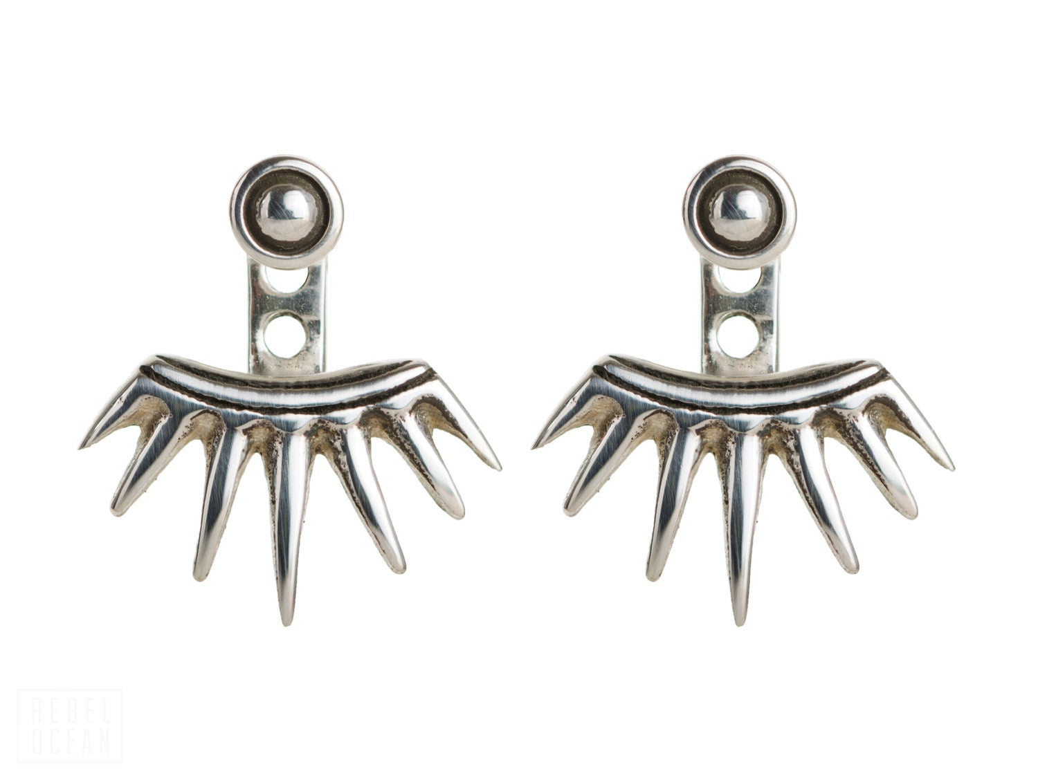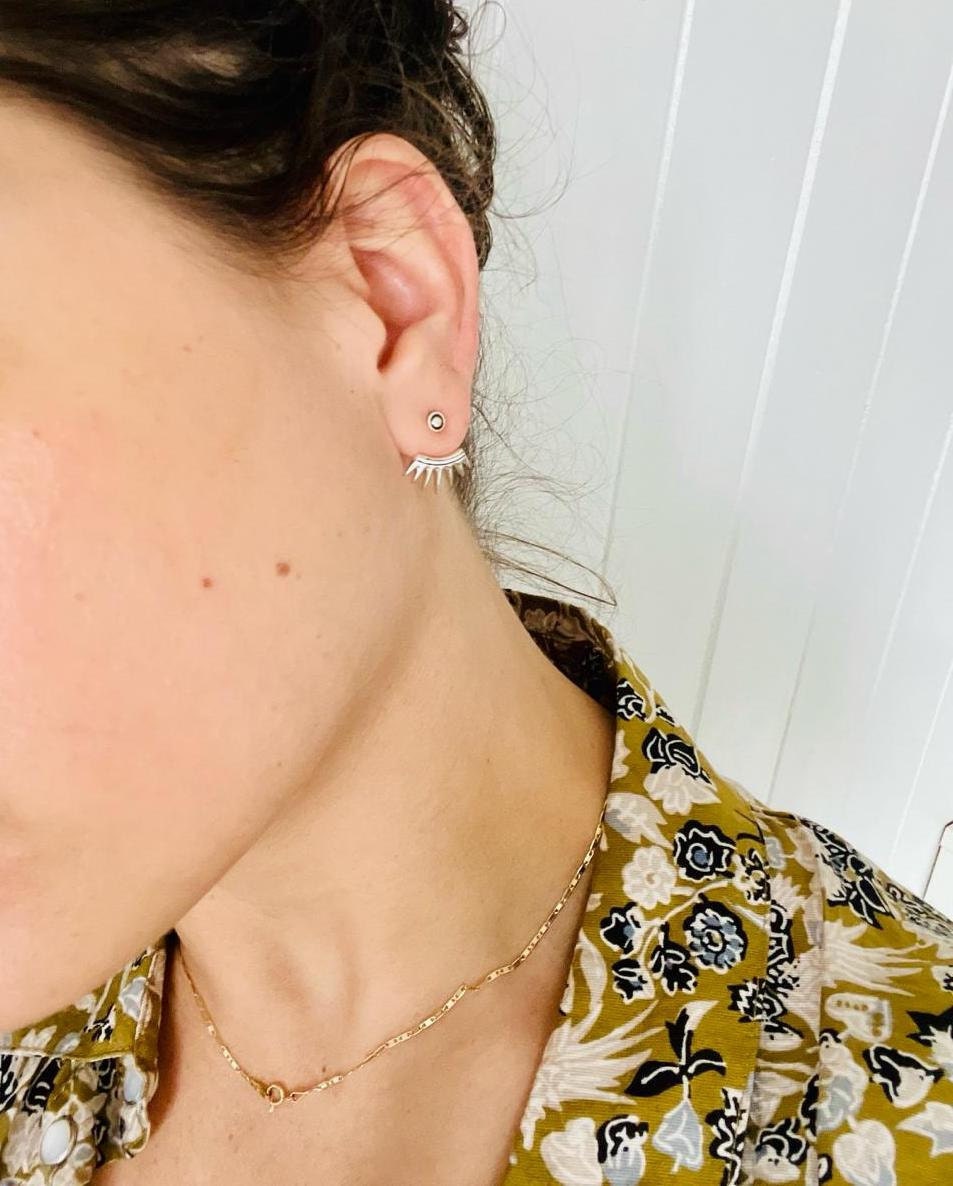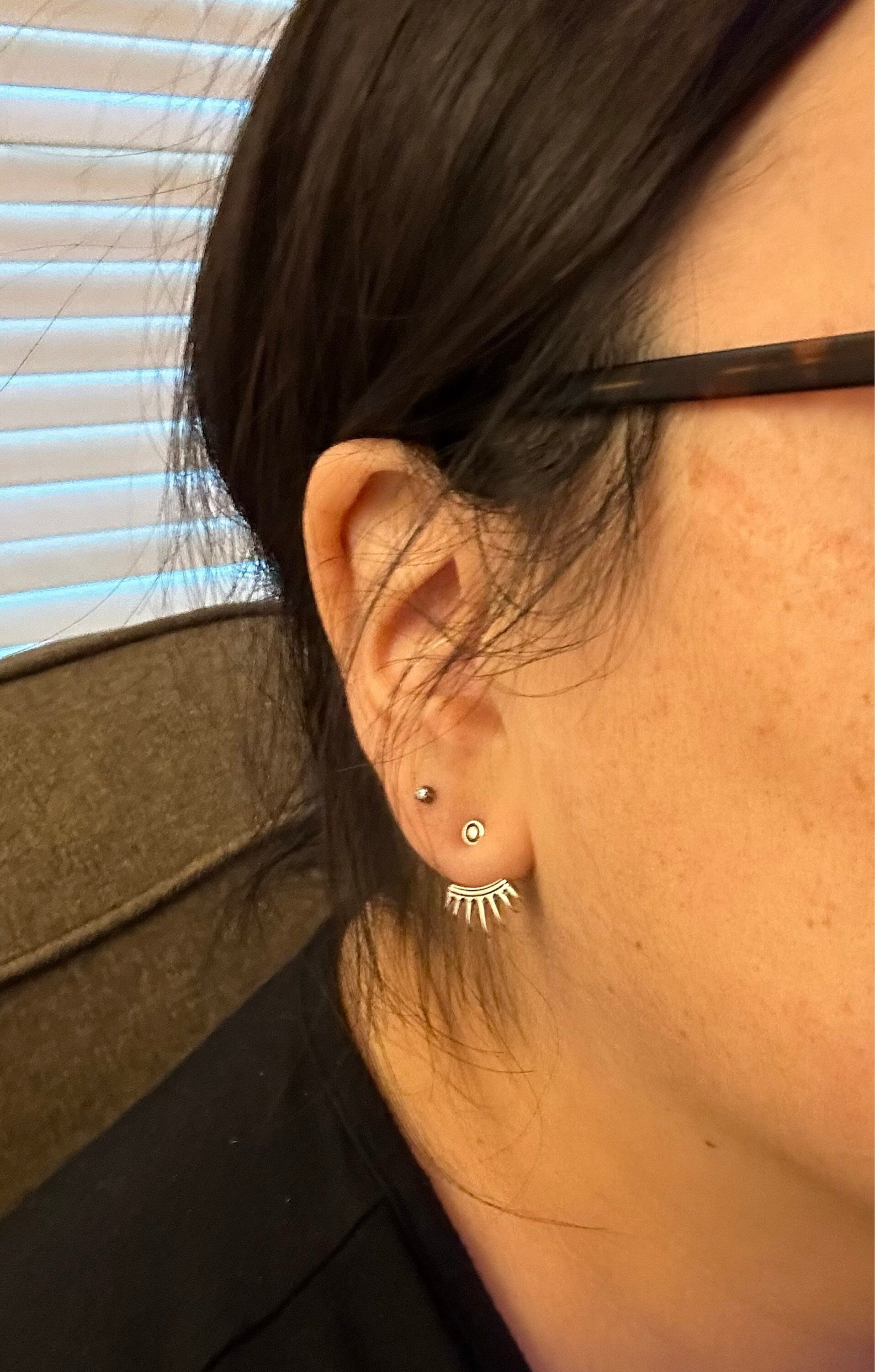 Sunshine ear jacket earrings cast in solid Sterling Silver 925, finish with black oxide and hand shiny polish. The Earring measures 11/16" (17mm) long. Moon dot stud earring can also be worn separately.
