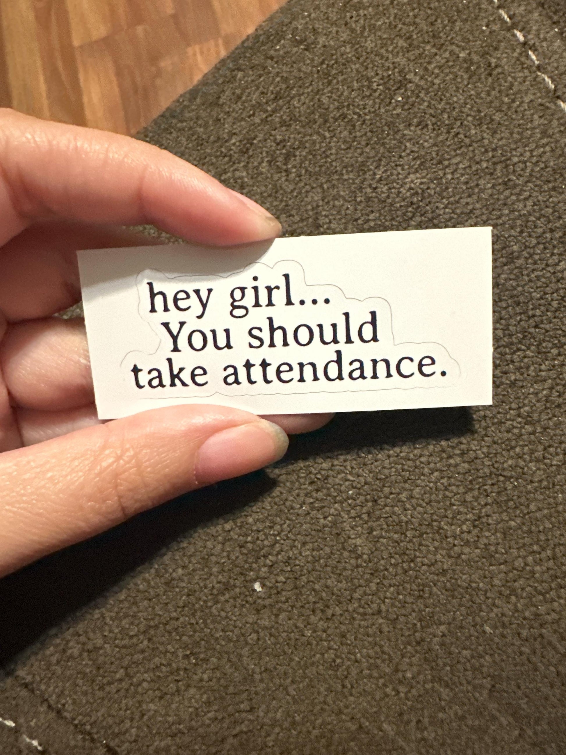 Teacher Stickers, Funny Gift for Teachers, Hey Girl, You should take attendance
