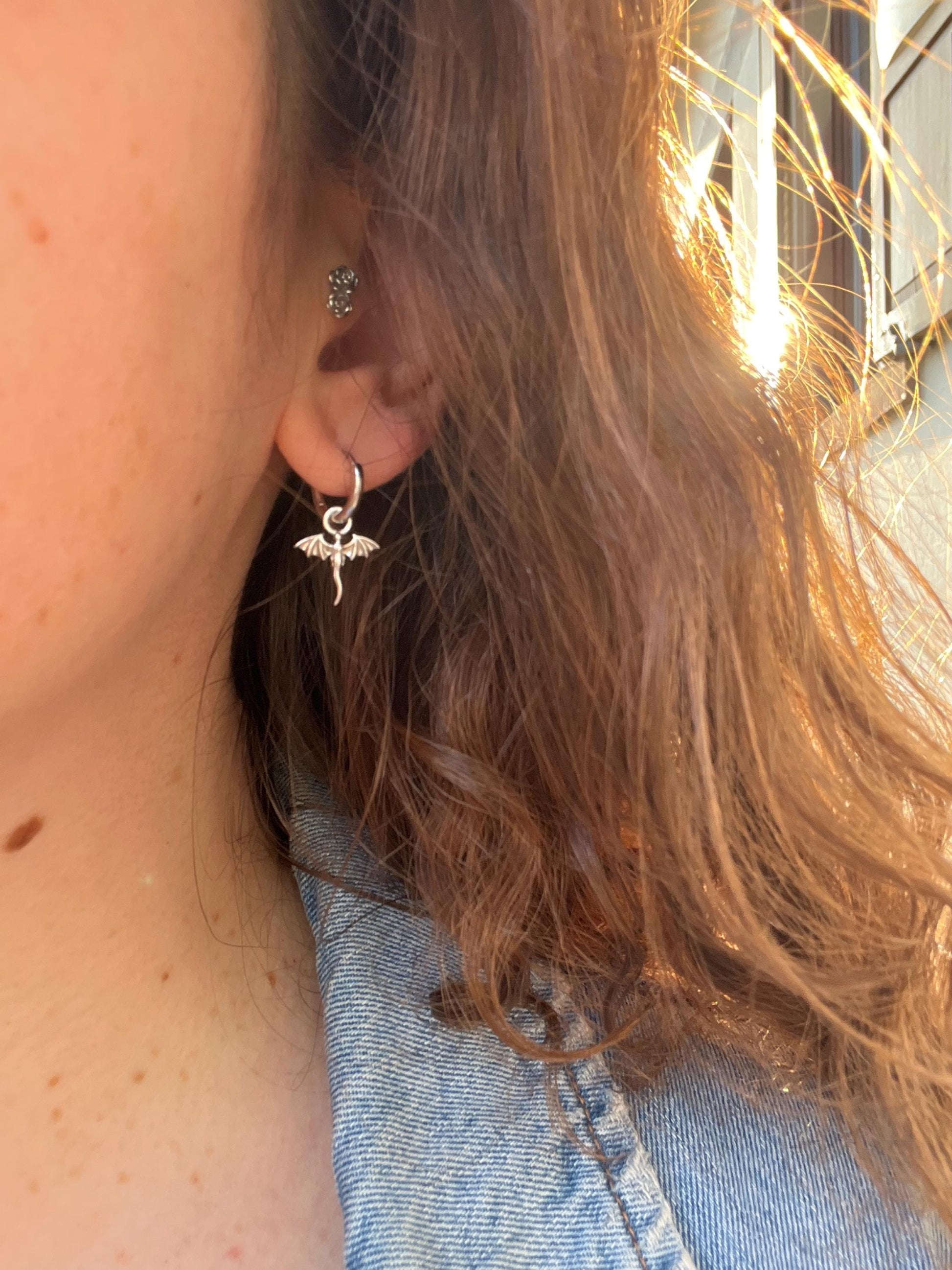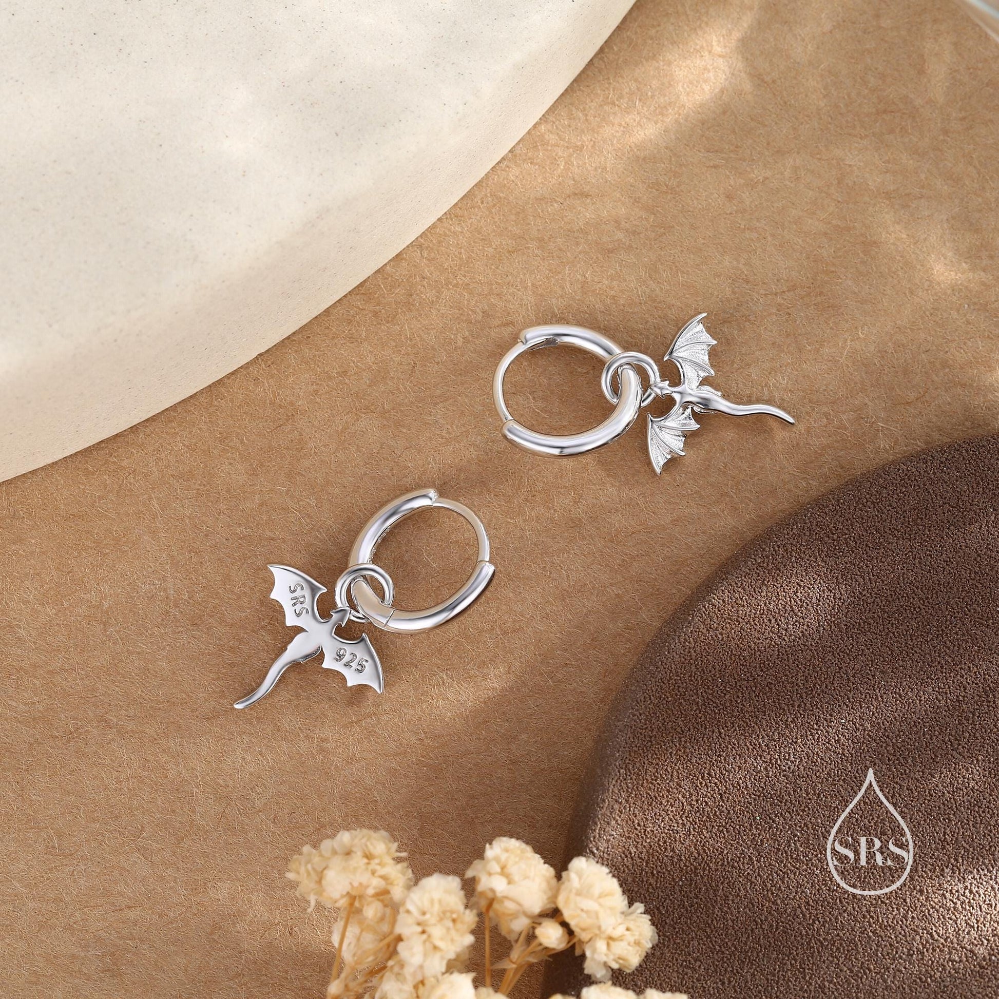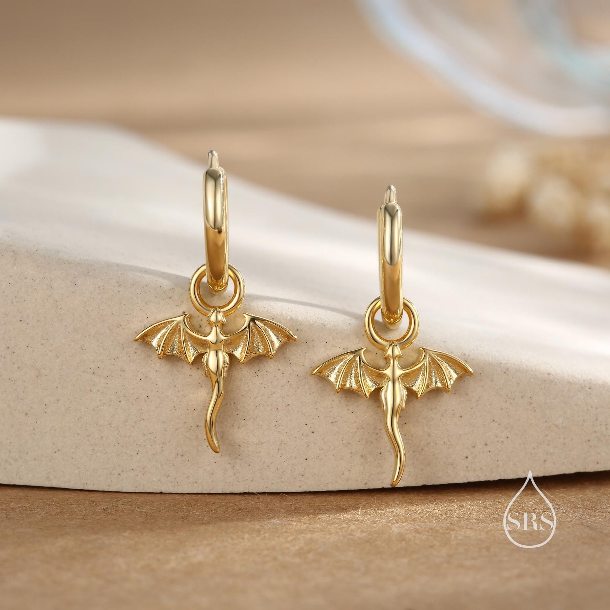 Tiny Dragon Huggie Hoop in Sterling Silver, Silver or Gold or Rose Gold, Dagon Dangle Hoop Earrings, Detachable and Interchangeable