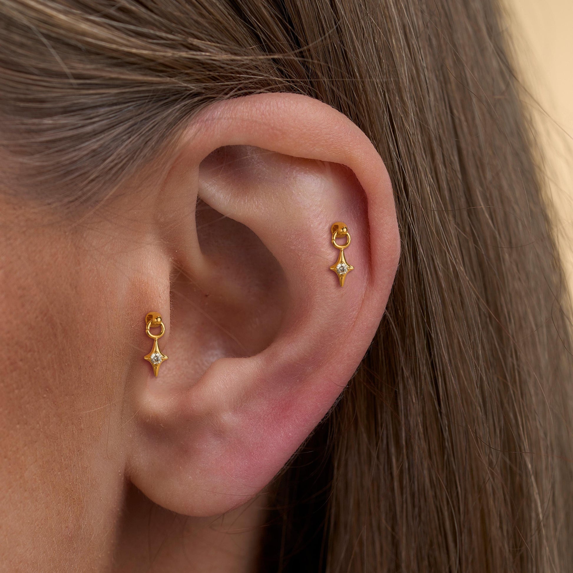 Titanium Vertical Dangle Helix Piercing, Threaded Flat Back Stud Earrings, Rook/Cartilage/Conch/Tragus/Helix Drop Earring