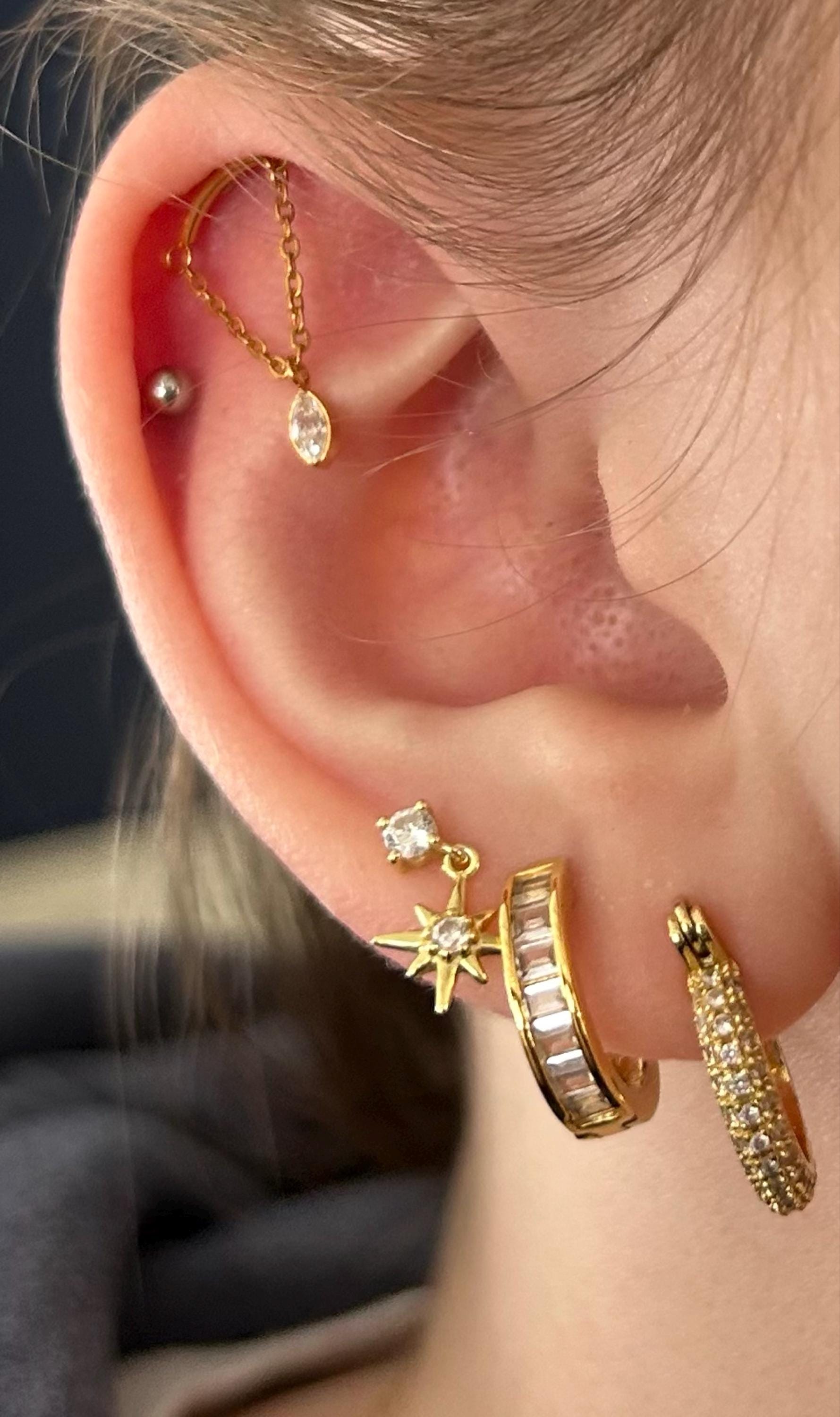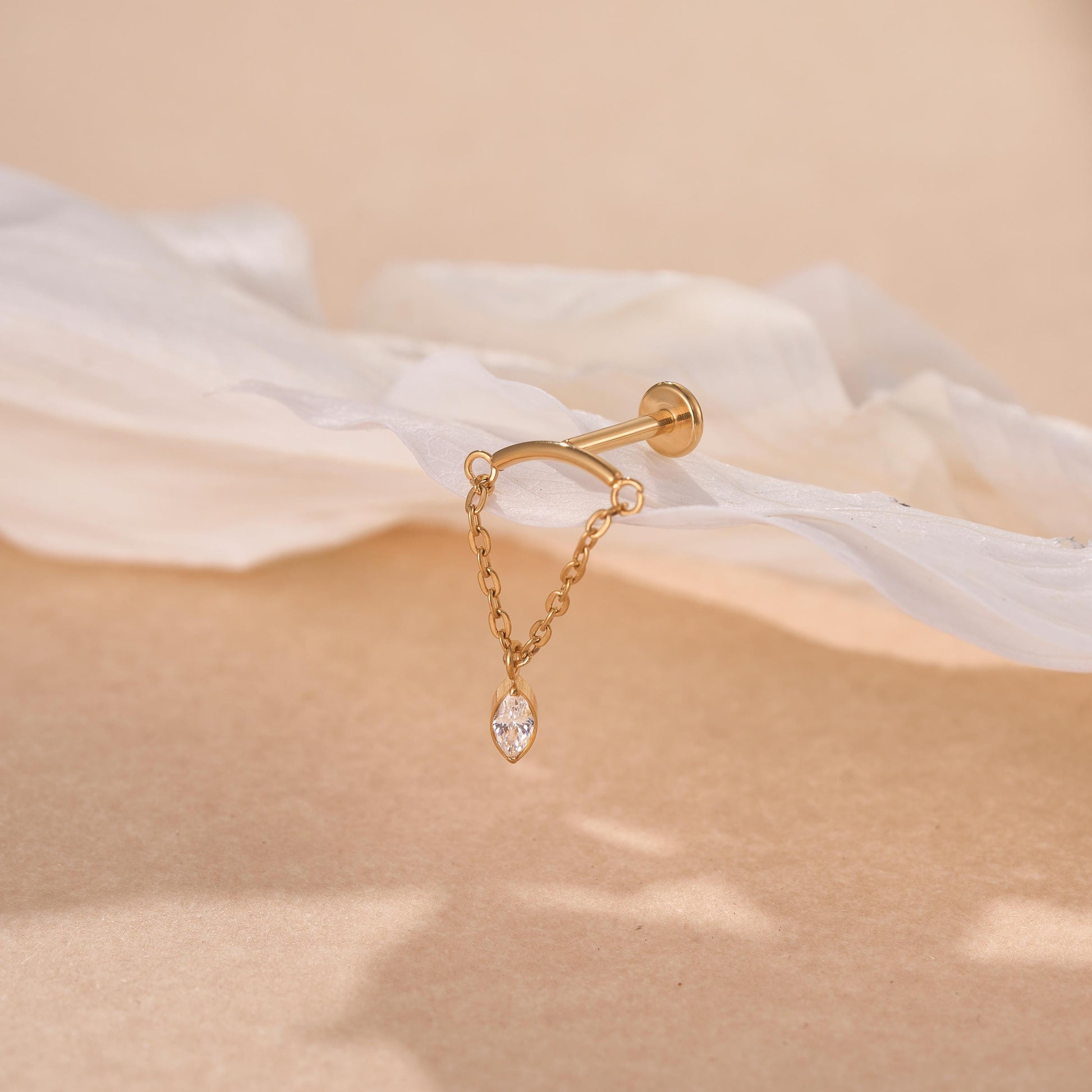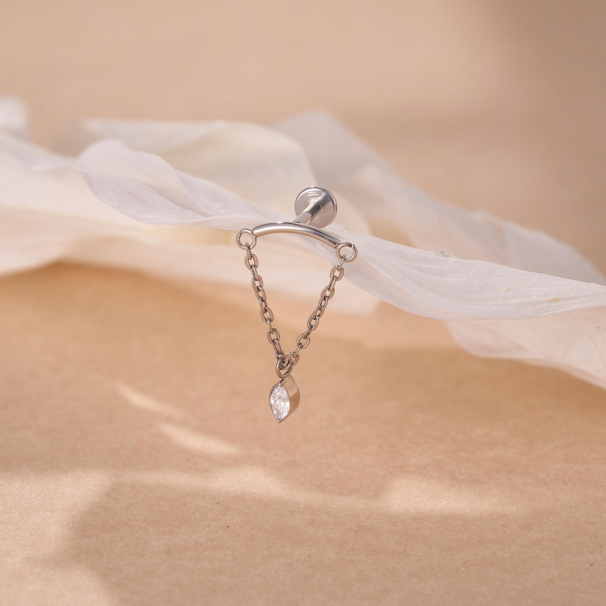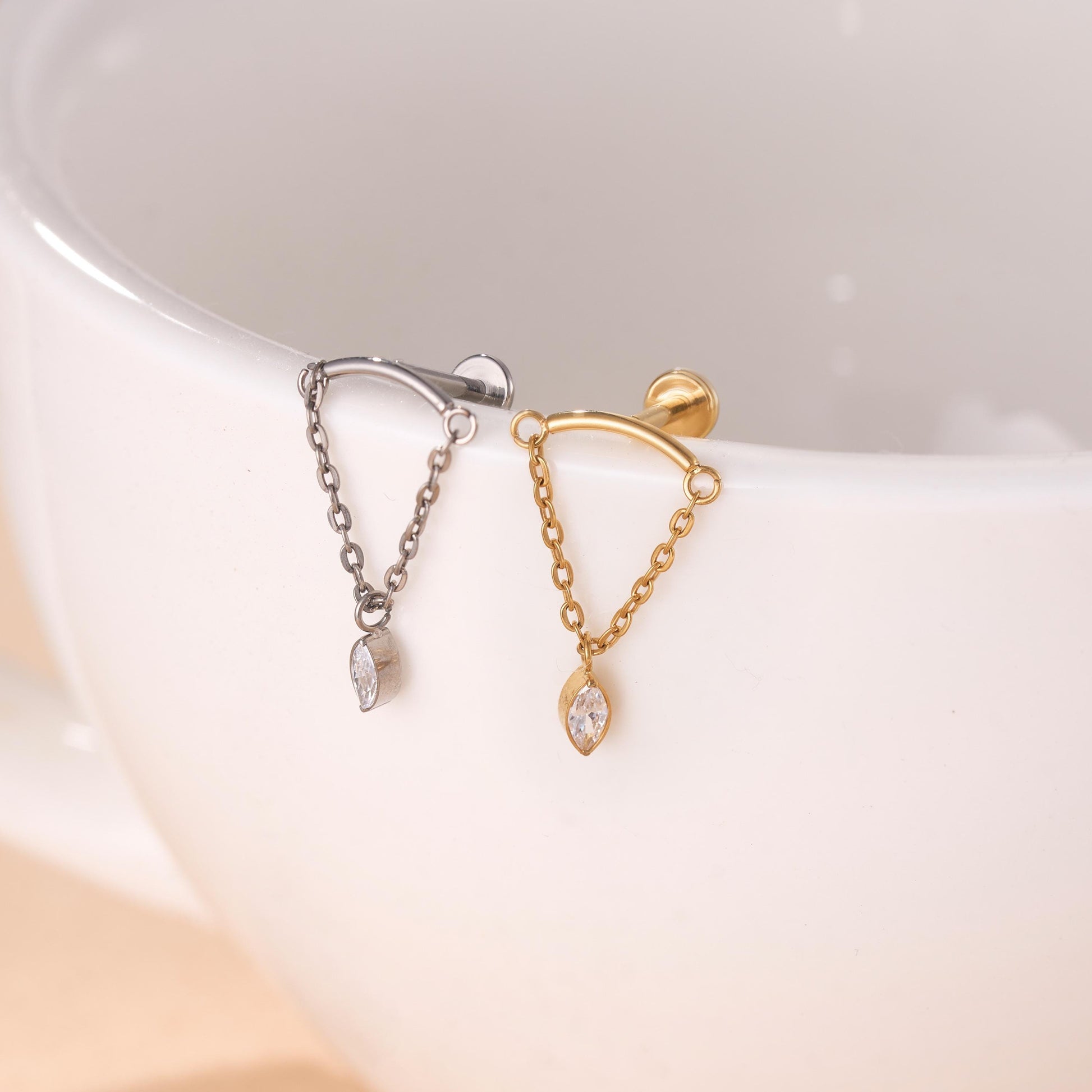 Titanium Vertical Dangle Hidden Helix Piercing, Threaded Flat Back Stud Earrings, Hidden Rook/Cartilage/Conch/Tragus/Helix Drop Earring