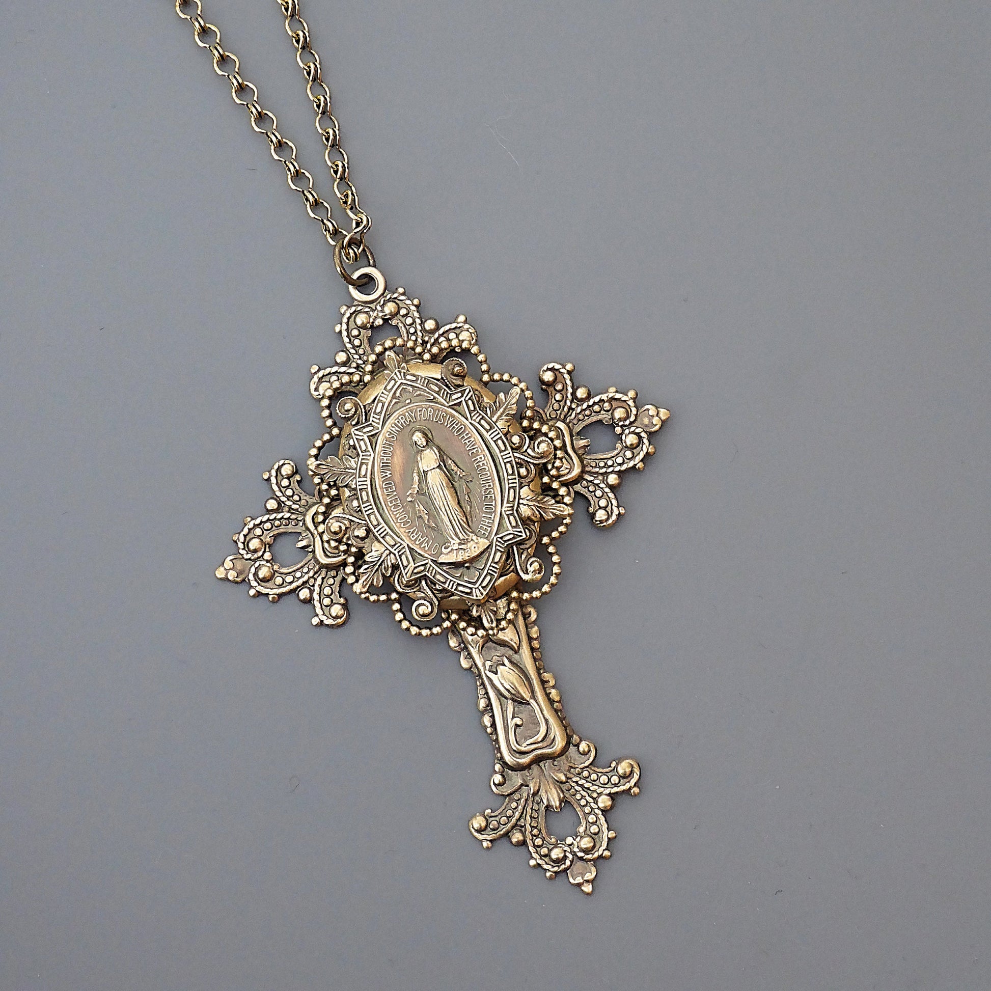 Vintage Jewelry - Cross Necklace - Mother Mary Necklace - Catholic Necklace - Brass Necklace - Chloe's Vintage Jewelry