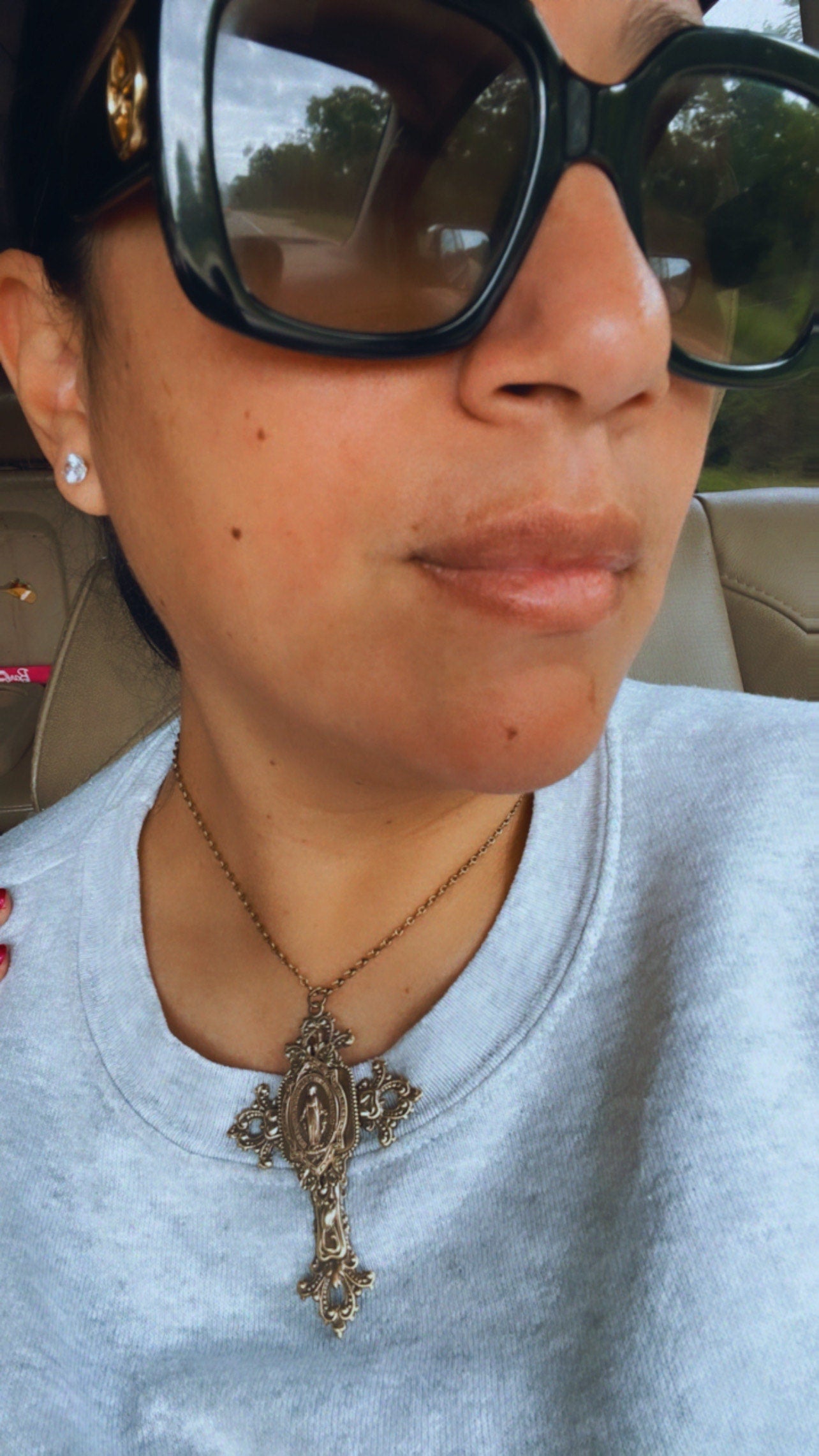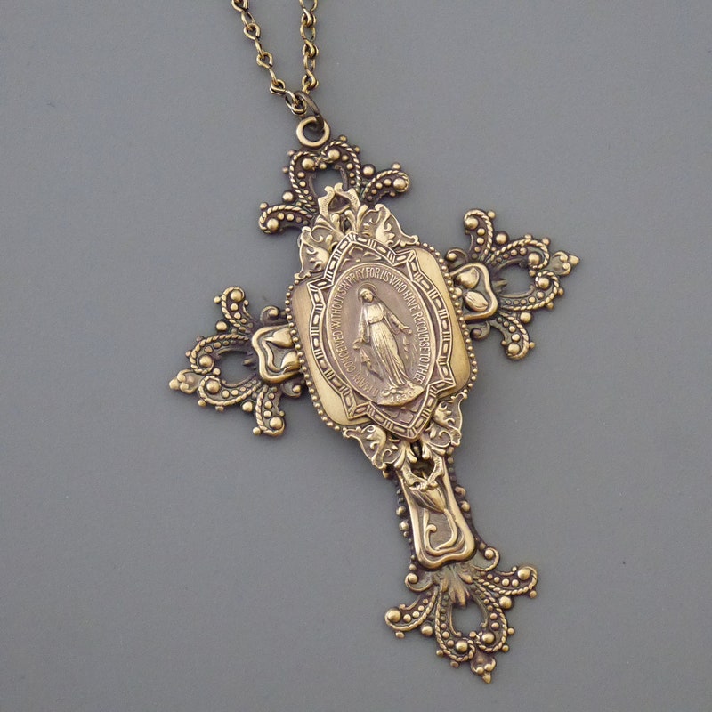 Vintage Jewelry - Cross Necklace - Mother Mary Necklace - Catholic Necklace - Brass Necklace - Chloe's Vintage Jewelry