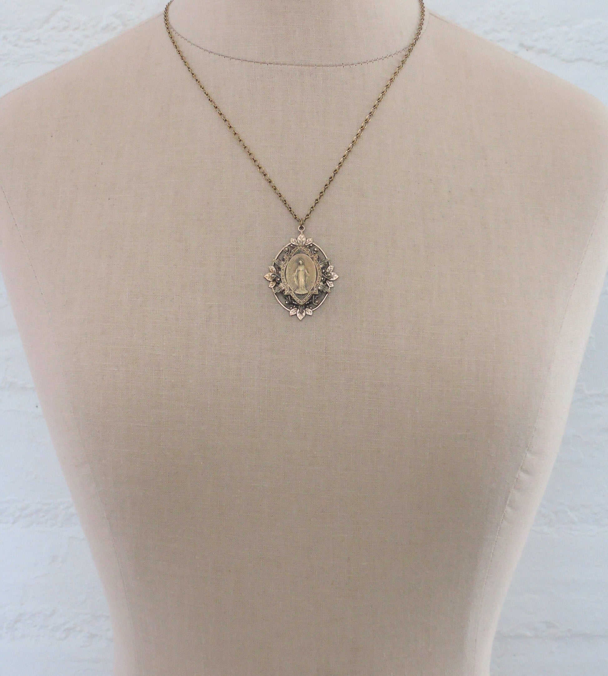 Vintage Jewelry - Vintage Brass Necklace - Mother Mary Necklace - Catholic jewelry - Chloes Vintage Jewelry - Spiritual Jewelry - handmade jewelry