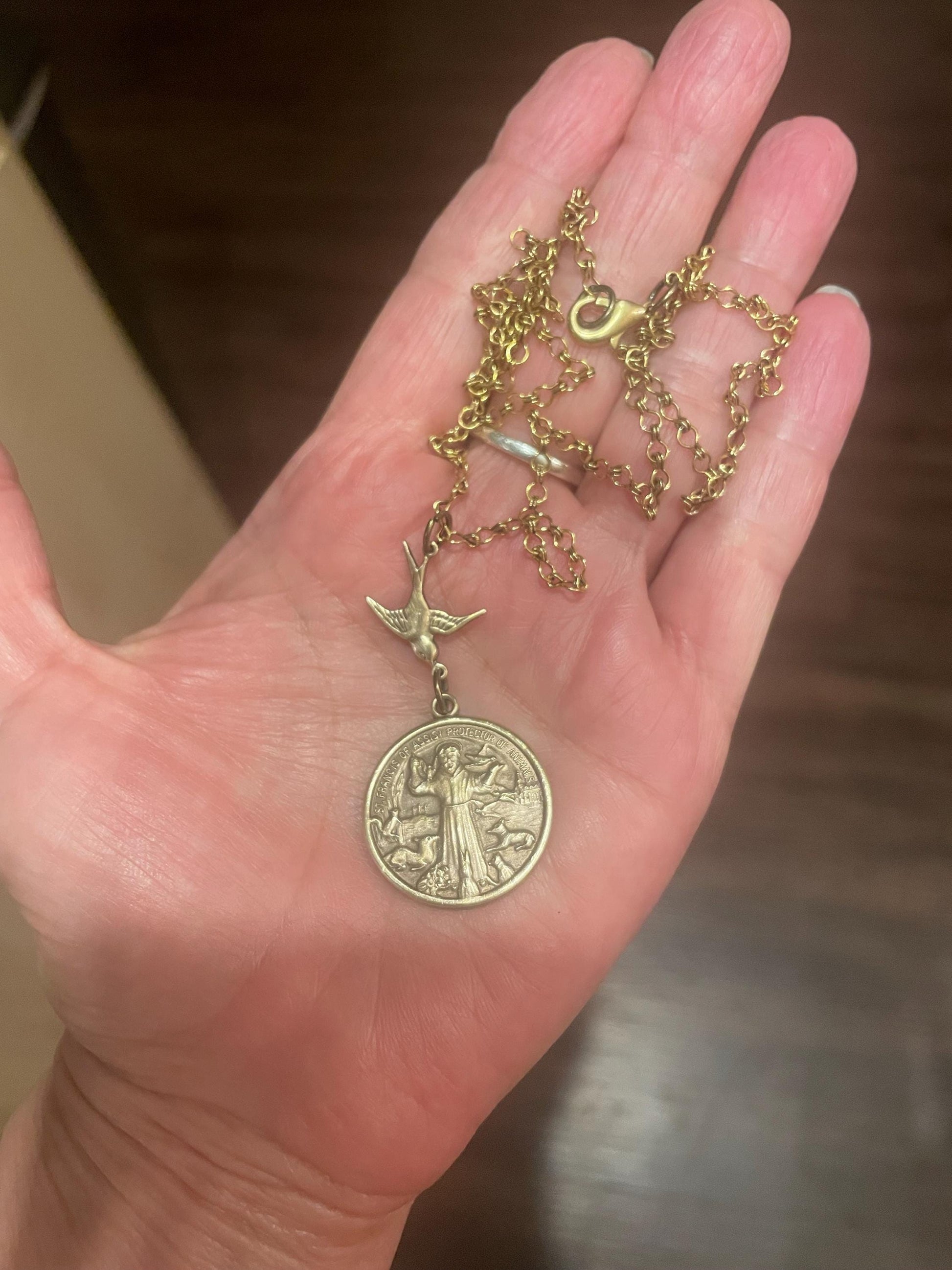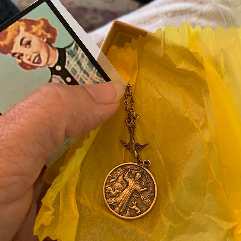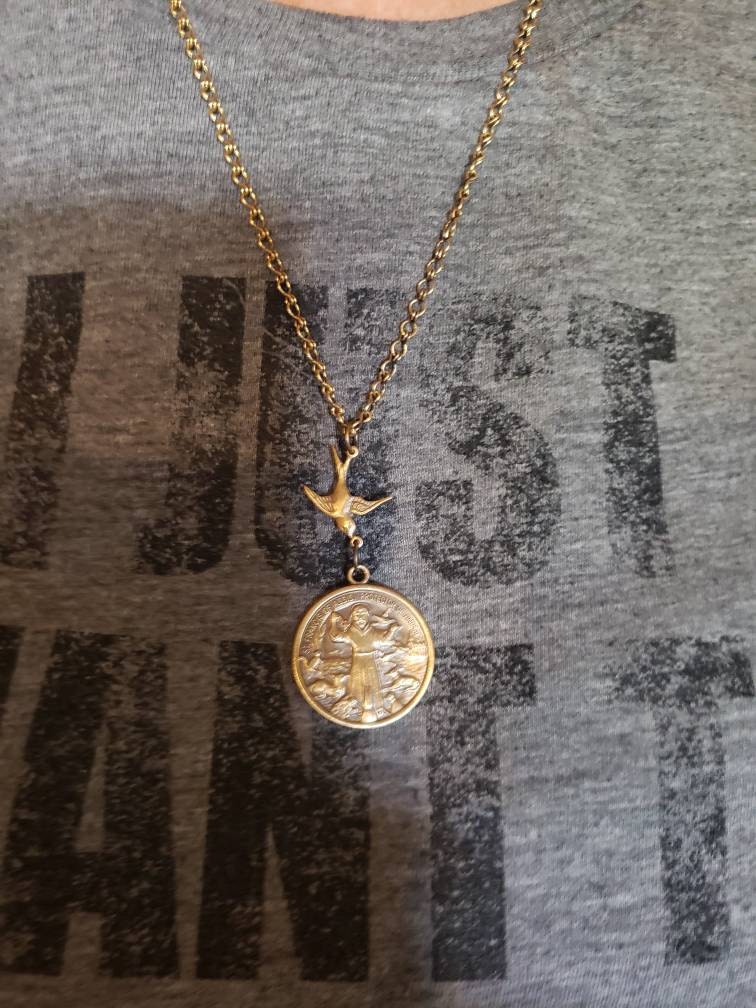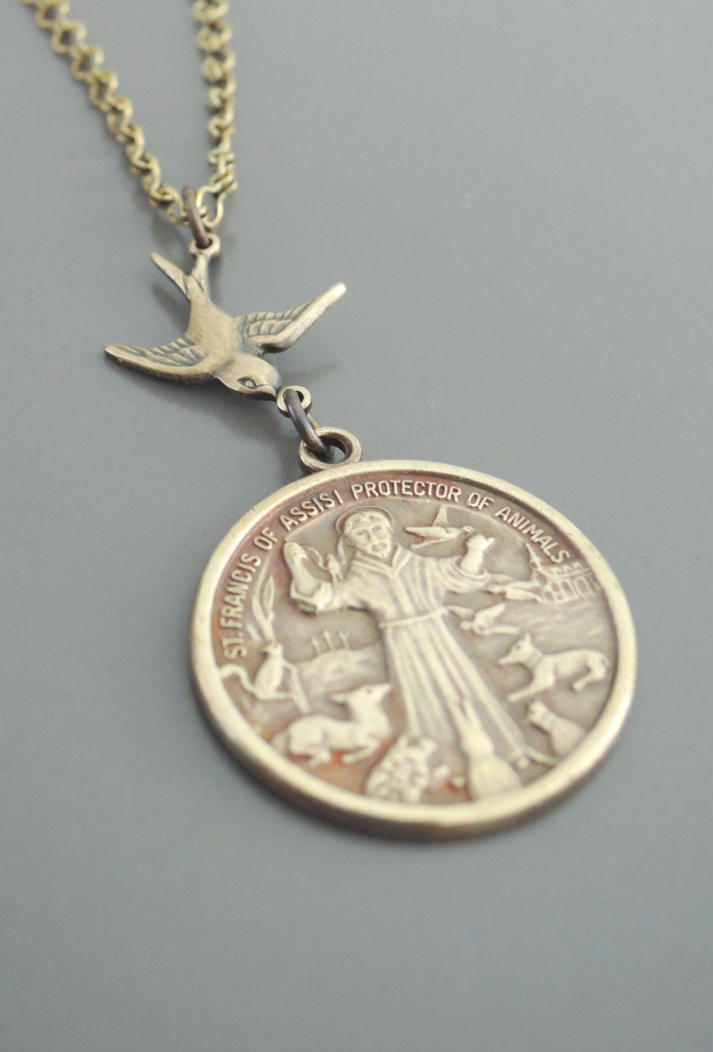 Vintage Jewelry - Vintage Necklace - Saint Francis necklace - Brass Necklace - Religious jewelry - Catholic necklace - handmade jewelry
