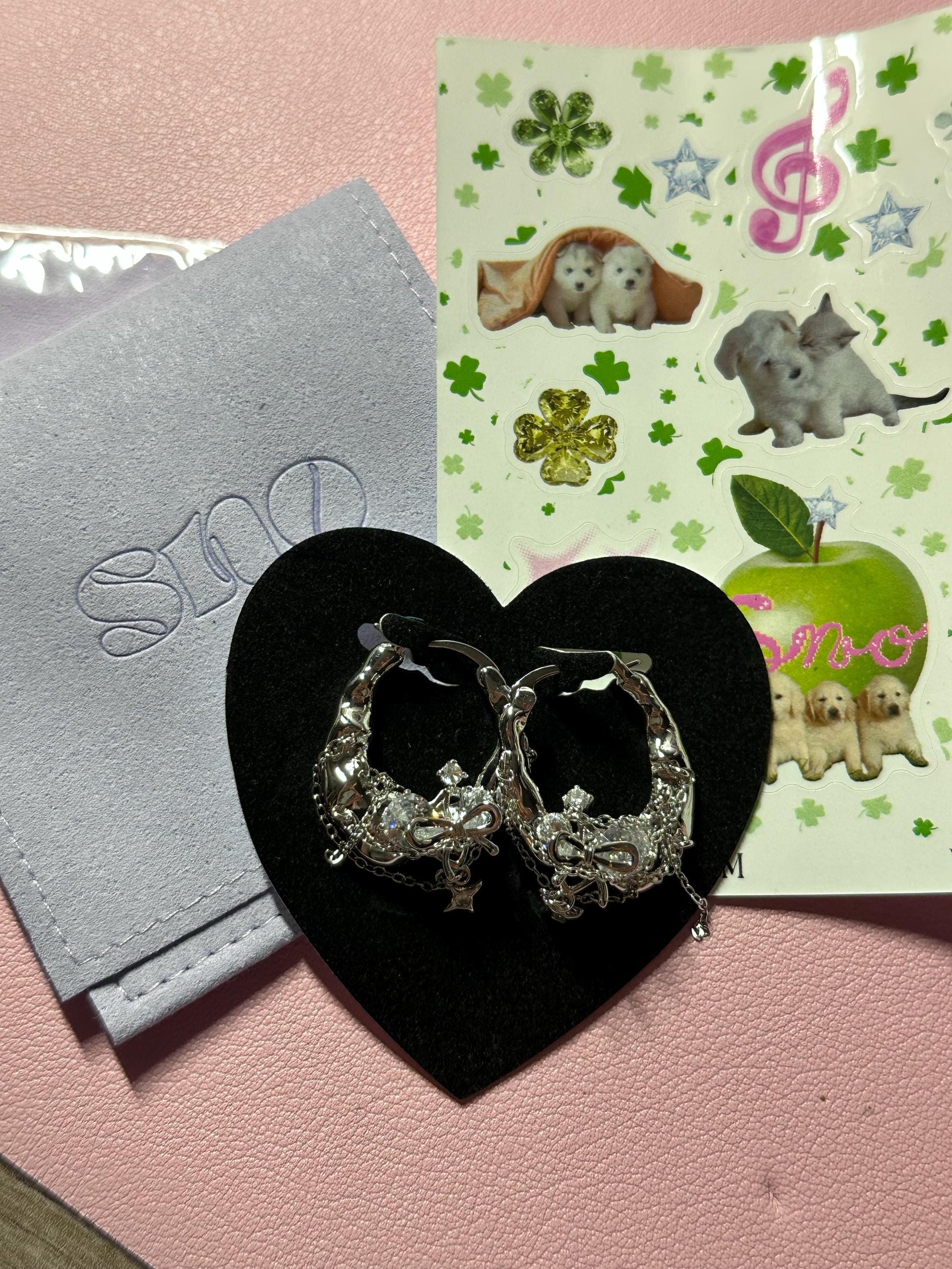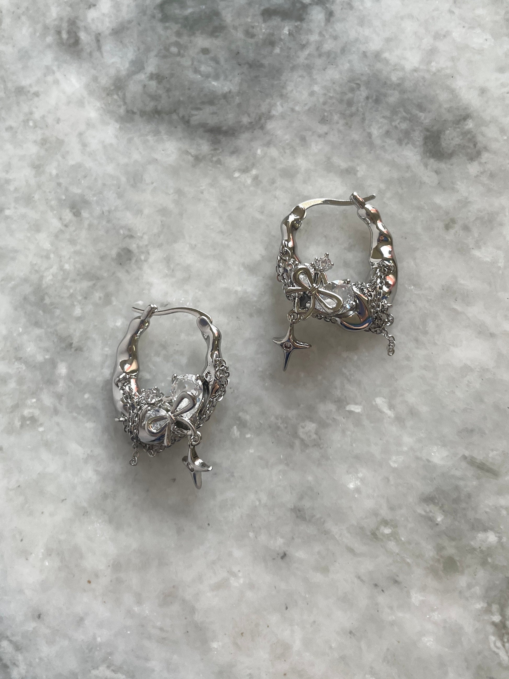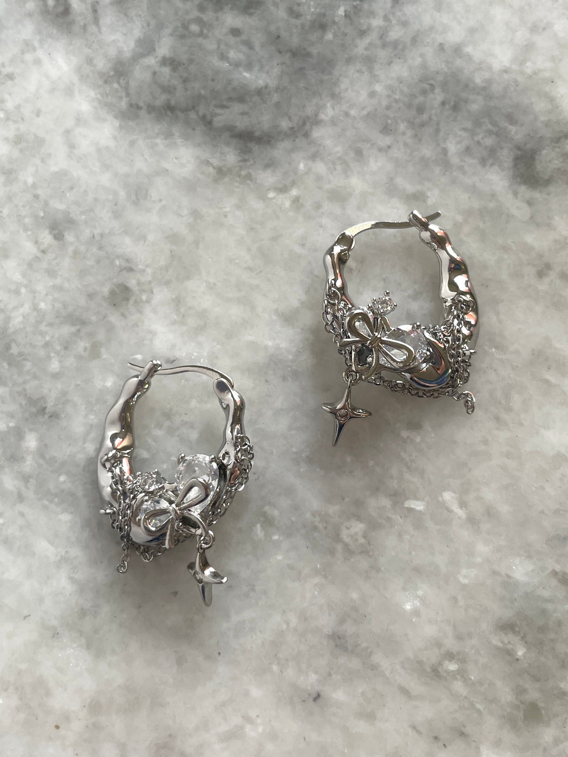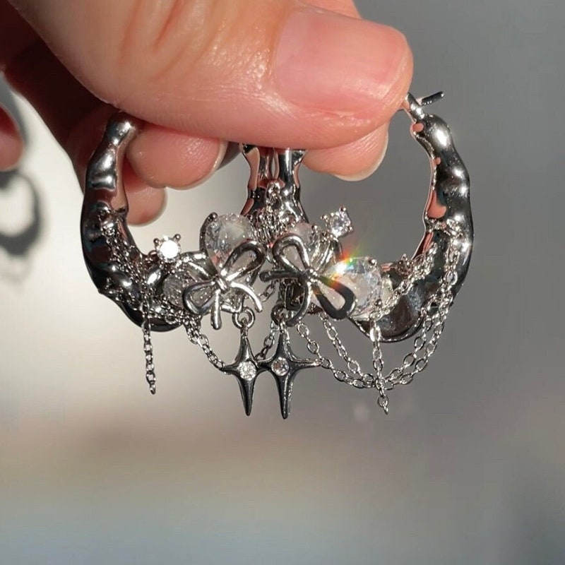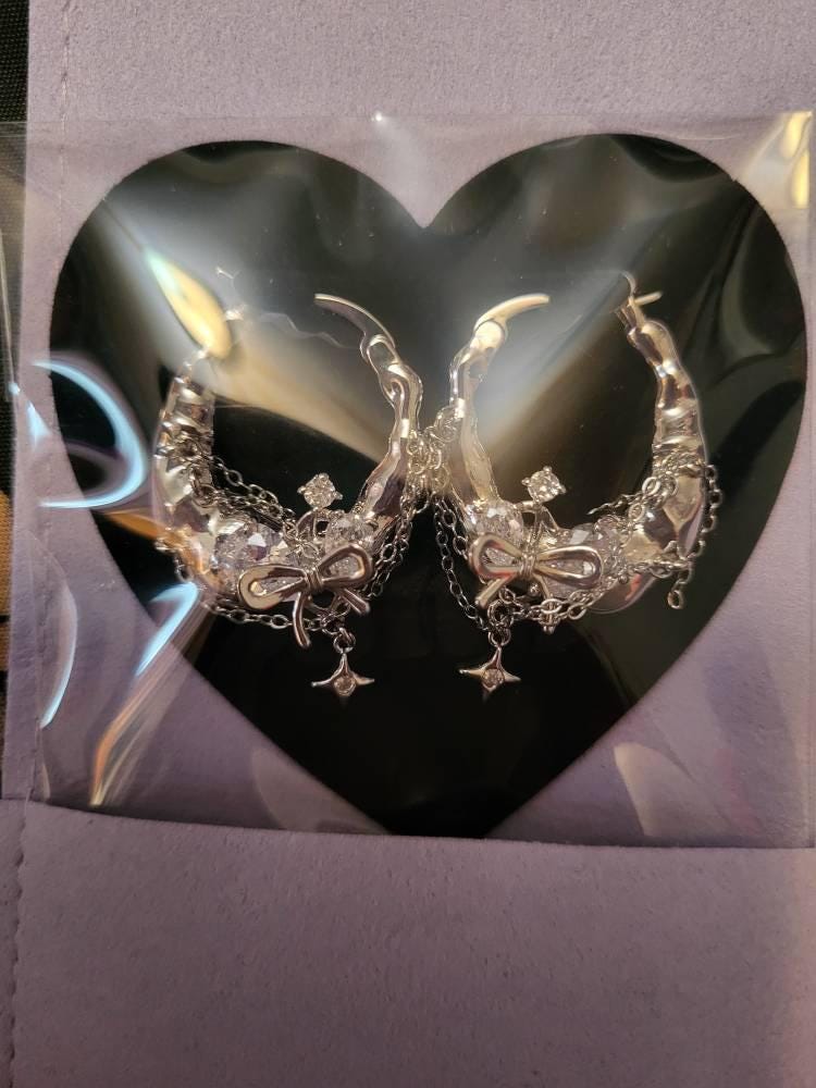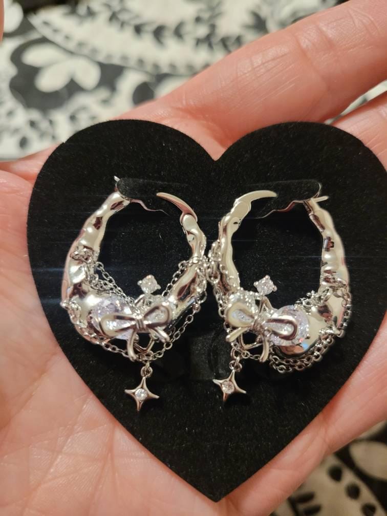 Chunky star earrings, star hoops, chunky star hoops, Y2k earrings, egirl earrings, nana anime earrings, bow earrings, coquette earringsperfect gift, gift girl, gift teen girl, gift for daughters birthday gift, anniversary gift. punk nana anime anime jewelry acubi goth alt jewelry