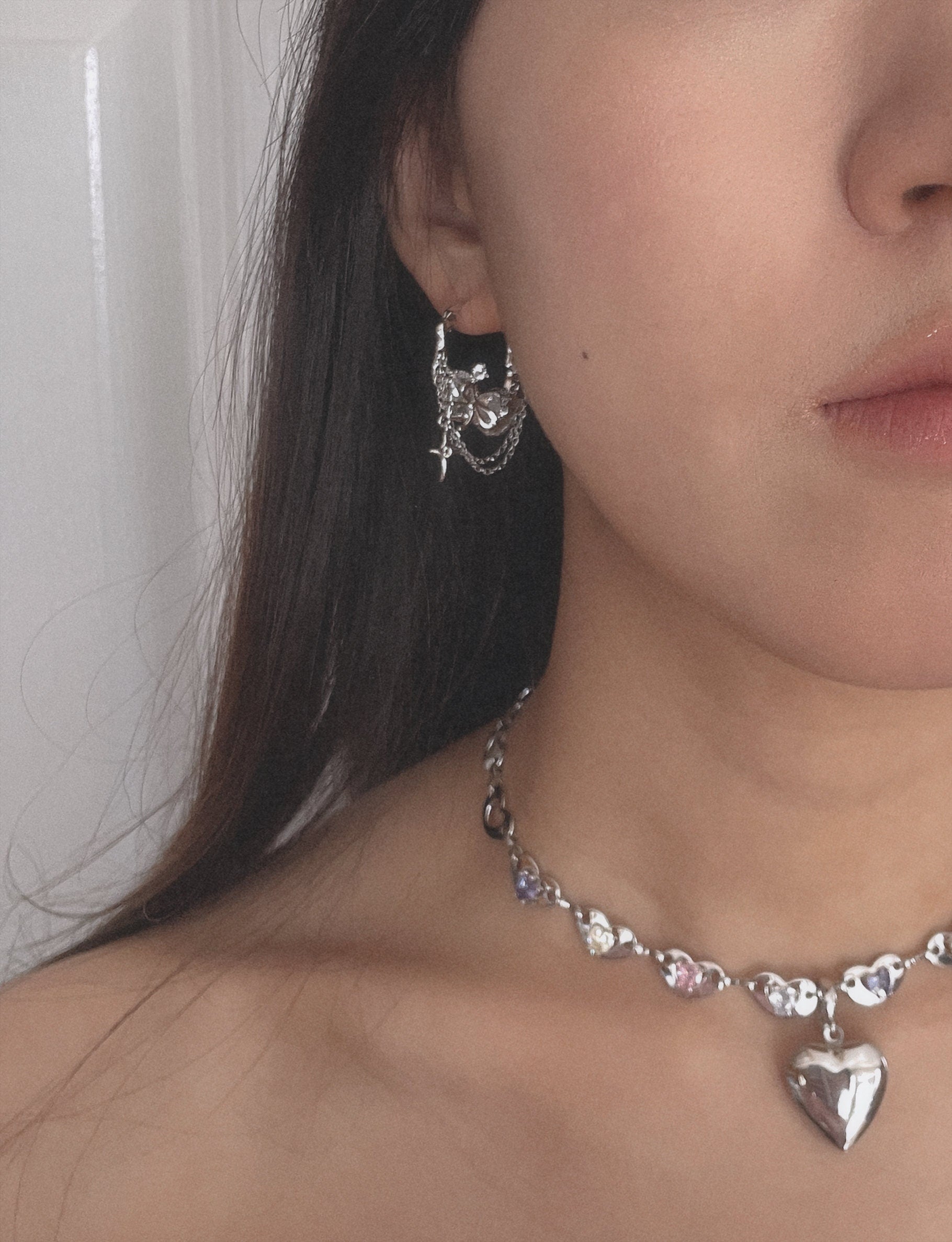 Y2K Grunge Earring Nana Punk Earrings Goth Hoop Earrings Grunge Statement Earrings Cyber Goth Rococo Aesthetic Gift for Her Holiday Gift